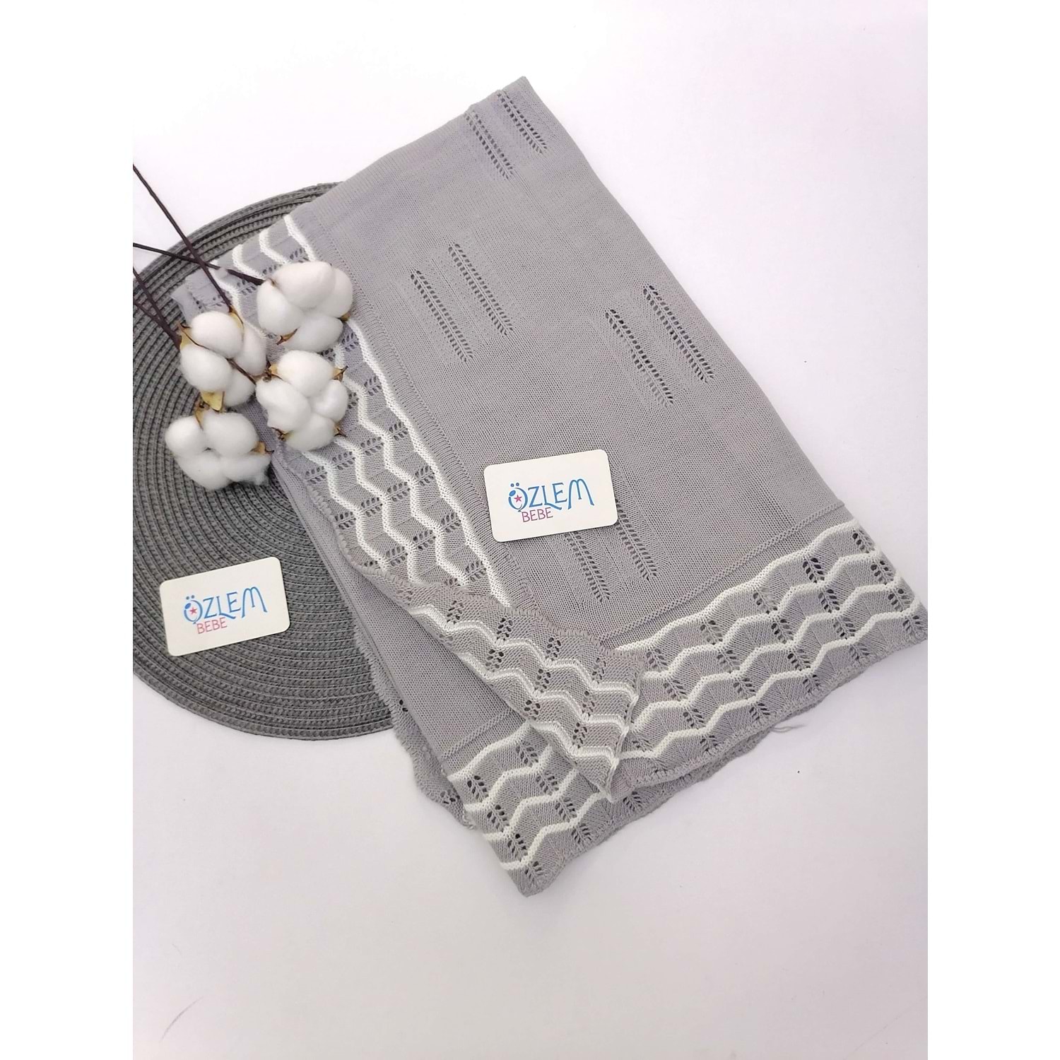 Kenarı Dantel Gri Merserize Battaniye