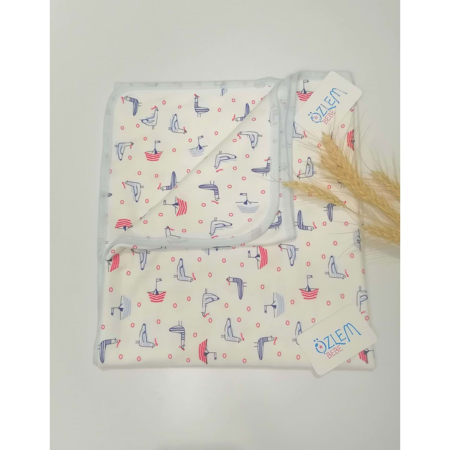 Mavi Martı Desenli Penye Battaniye