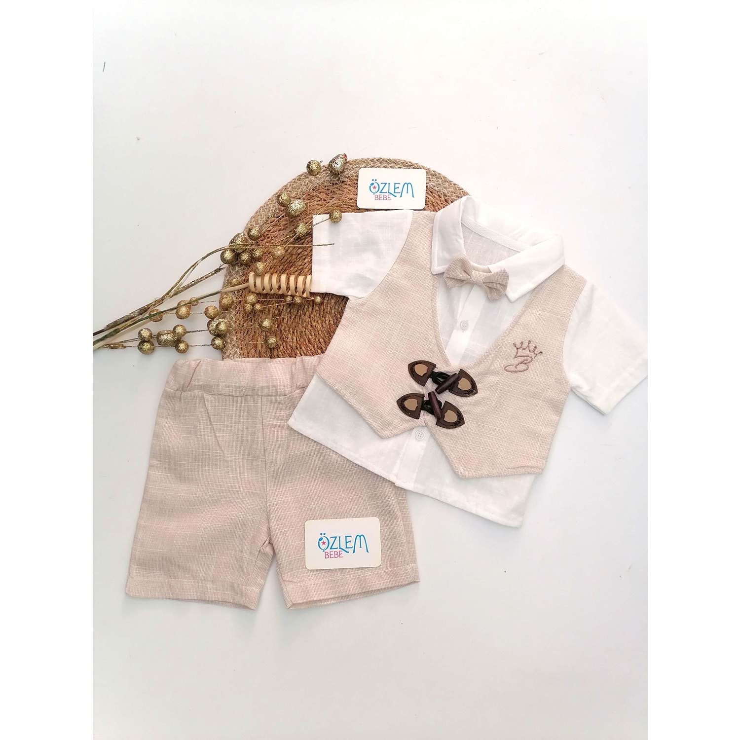 Çoban Düğme Cepken Yelek 2'li Keten Takım