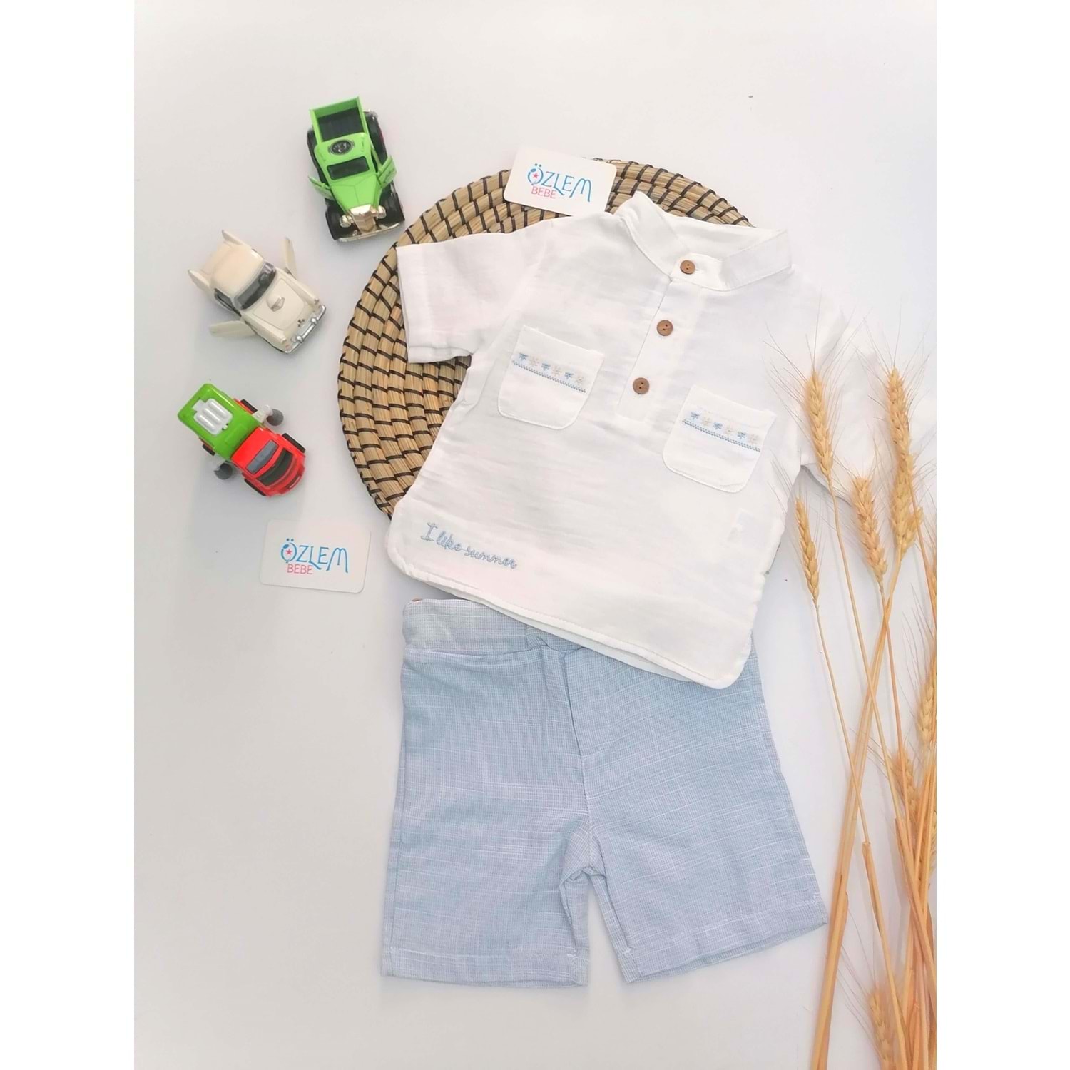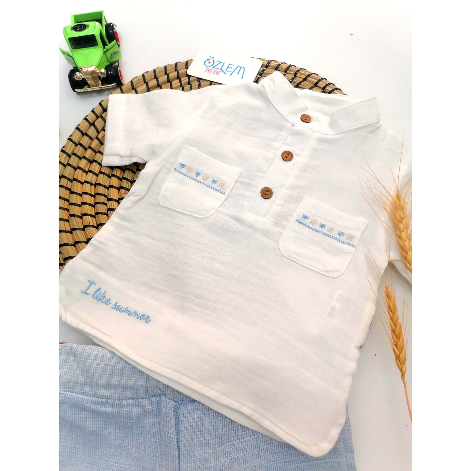 Hakim Yaka Nakış Gömlek Şortlu 2'li Takım