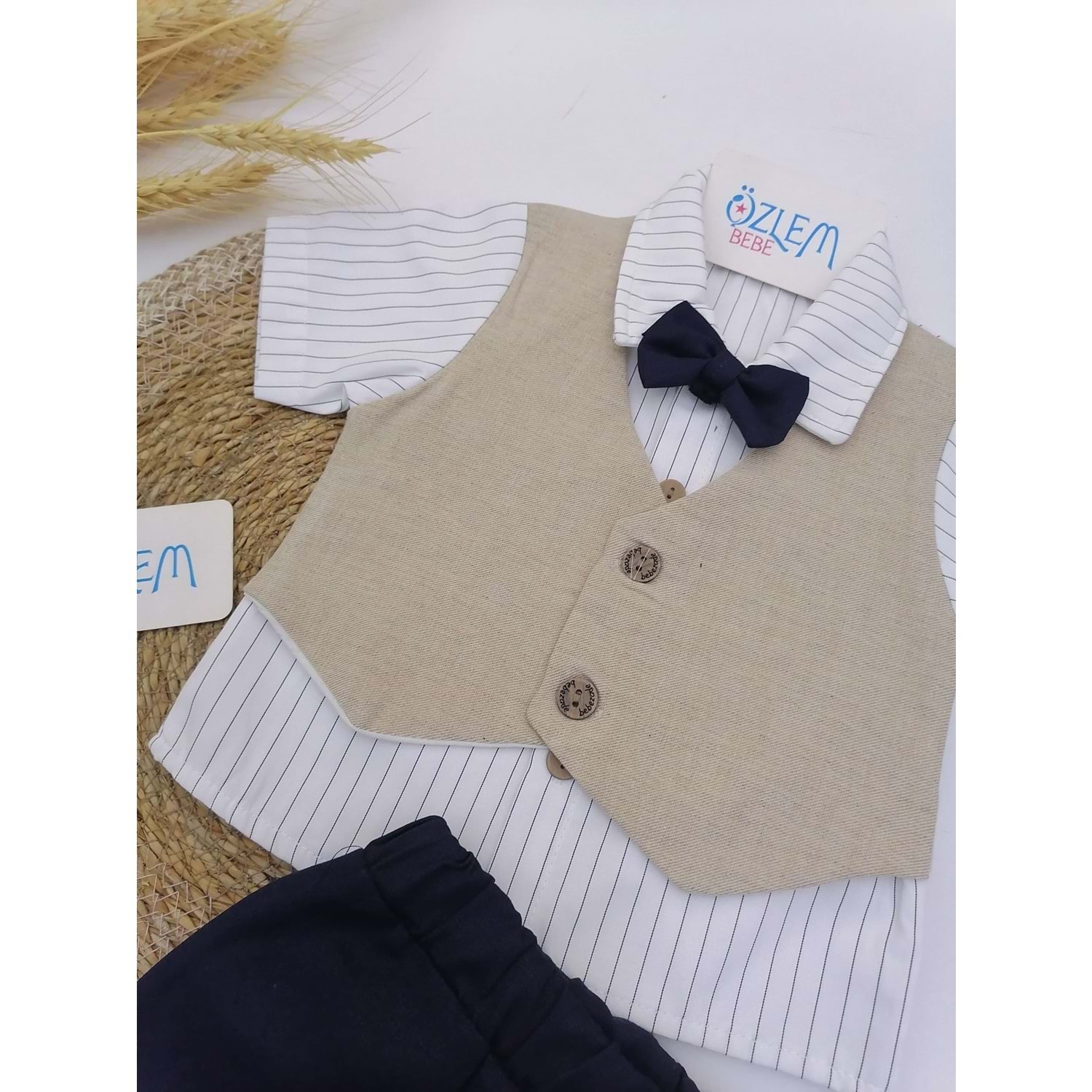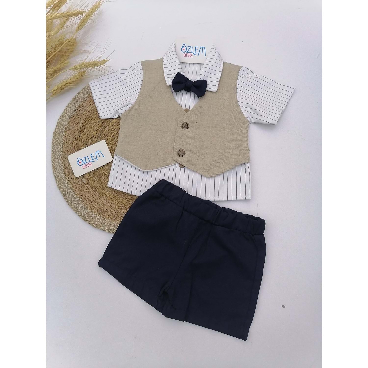Krem Cepken Gömlekli Şortlu Takım