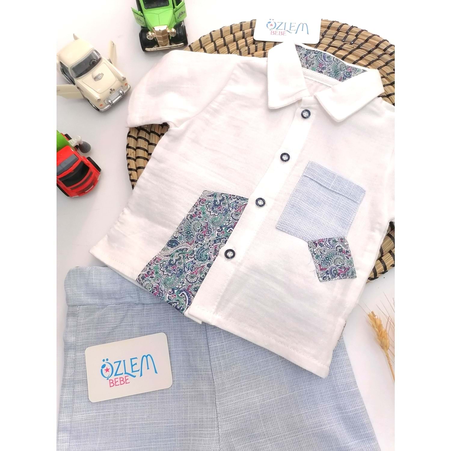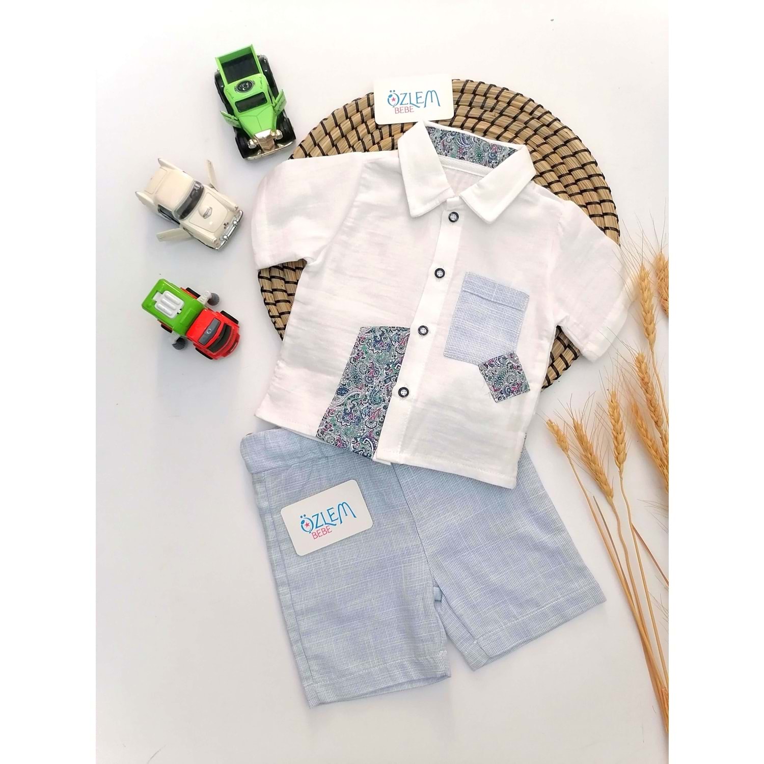 Şal Desen Gömlek Şortlu 2'li Takım