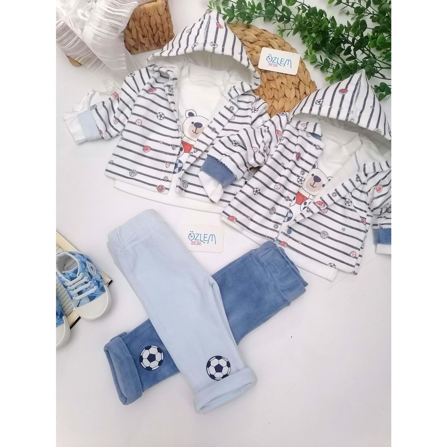 Topçu Ayıcık Hırkalı Kadife 3'lü Takım