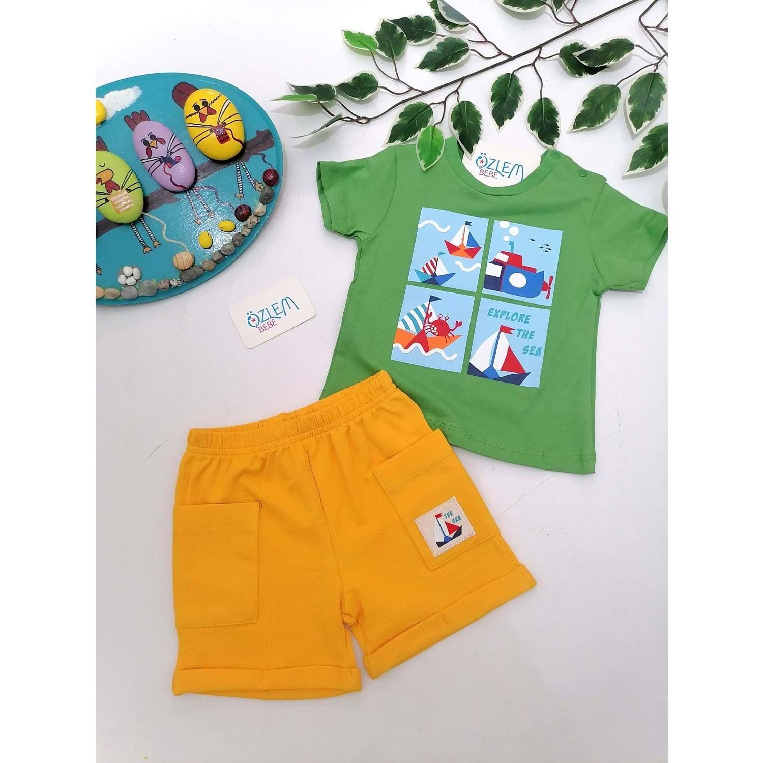 Yelken Temalı Yeşil Tişört Şortlu Takım
