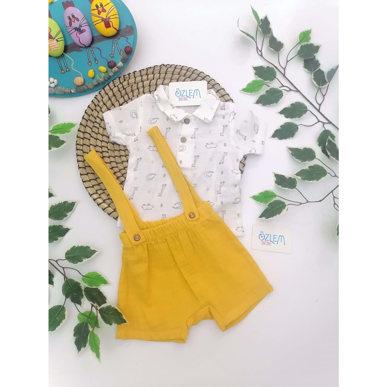 Zürafa Desen Müslin Gömlek&Salopet 2'li Takım