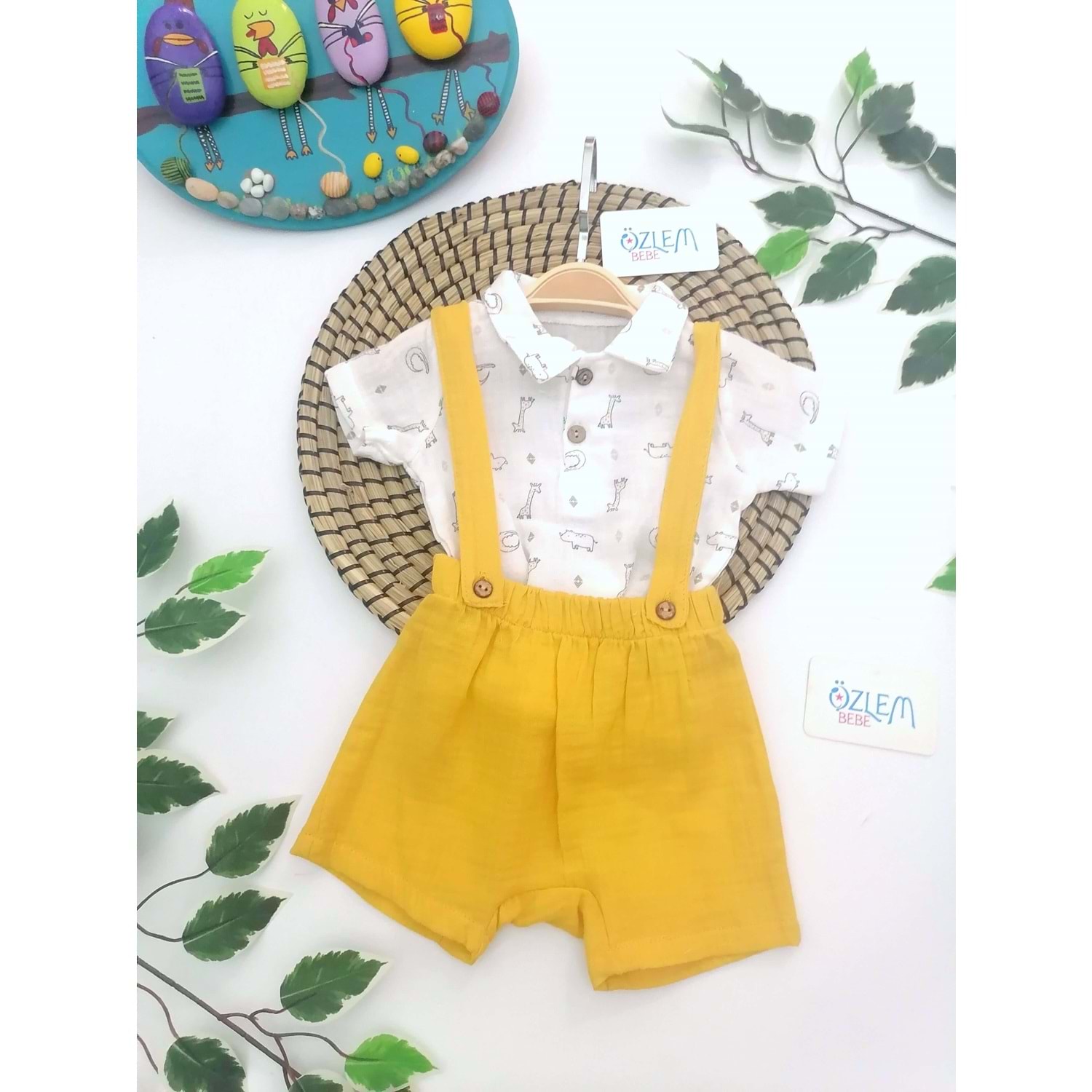 Zürafa Desen Müslin Gömlek&Salopet 2'li Takım