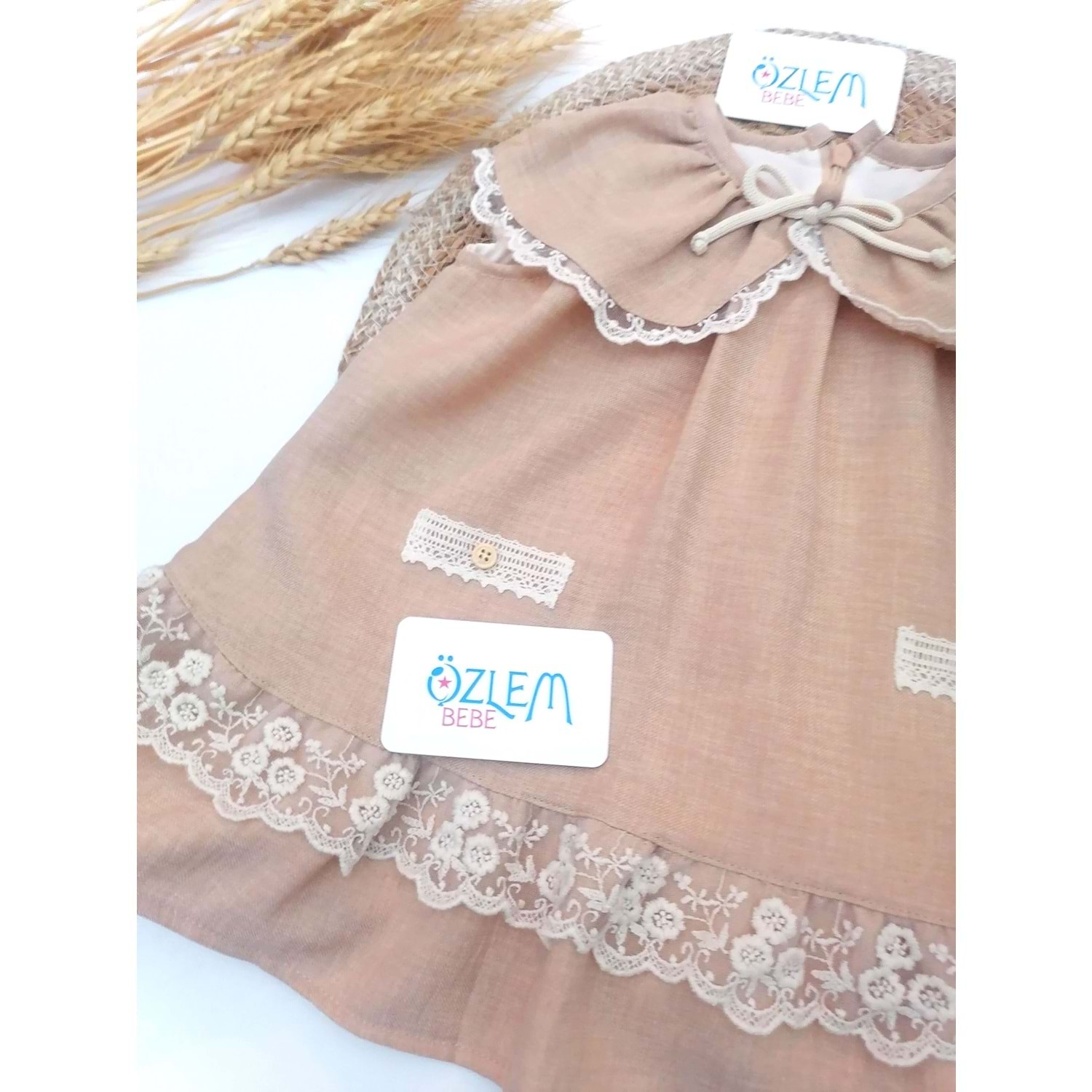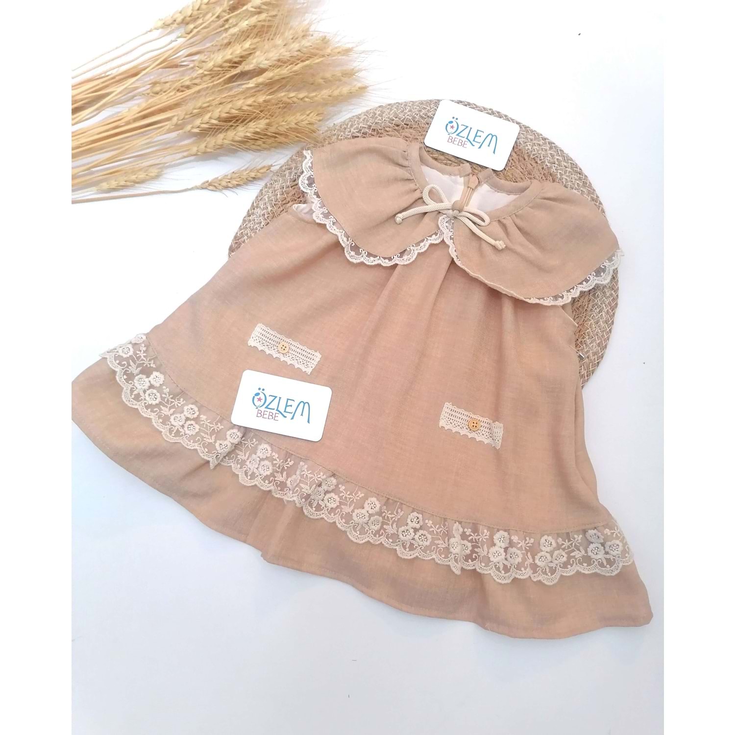 Fırfır Yaka Dökümlü Eteği Dantel Biye Kolsuz Elbise