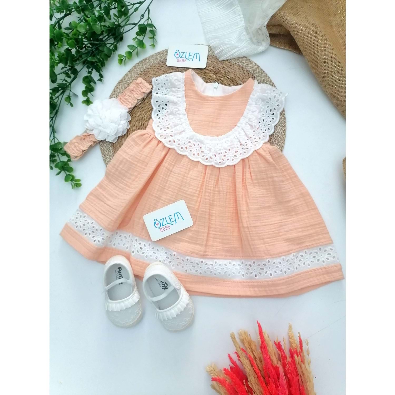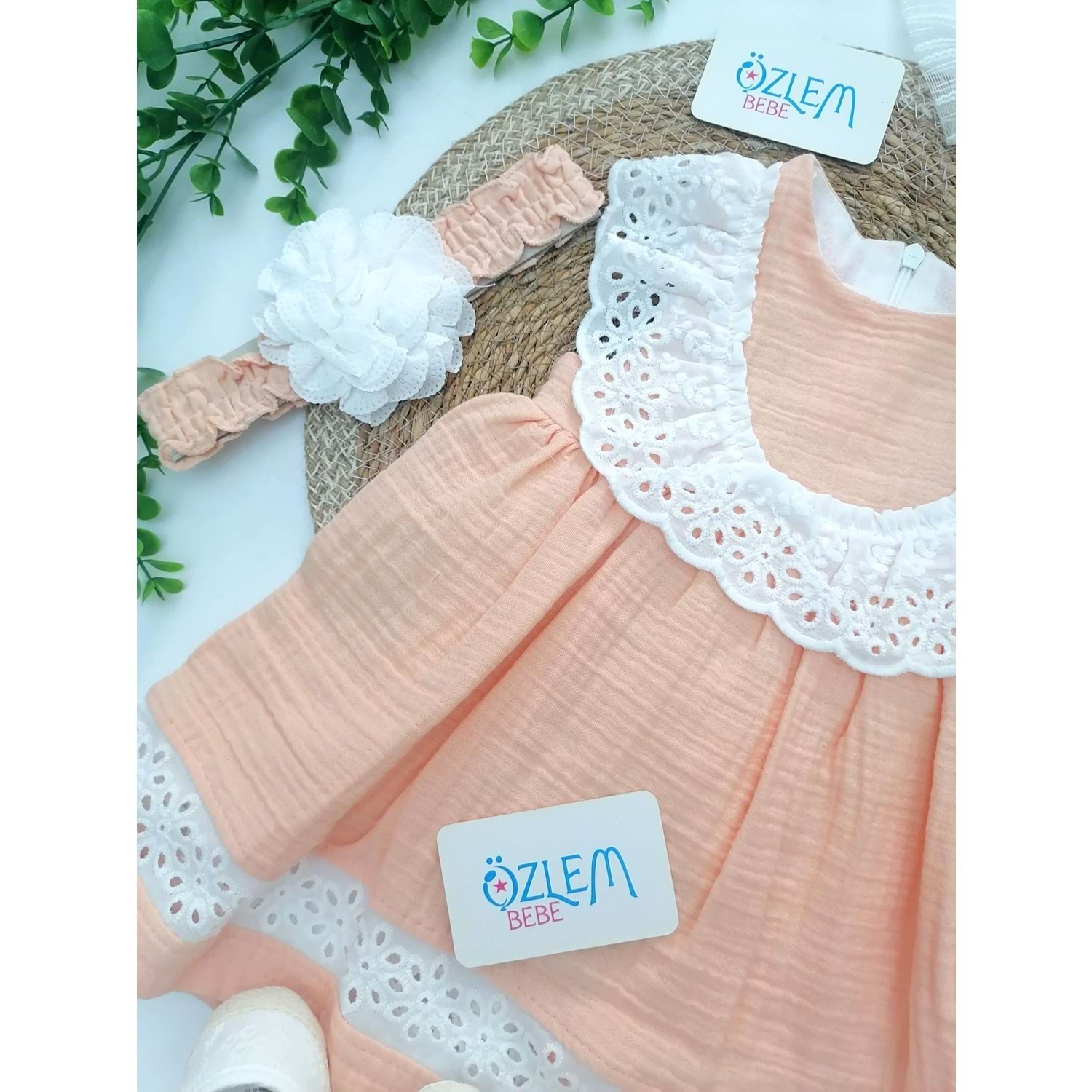 Güpür Yaka Eteği Dantel Müslin Elbise