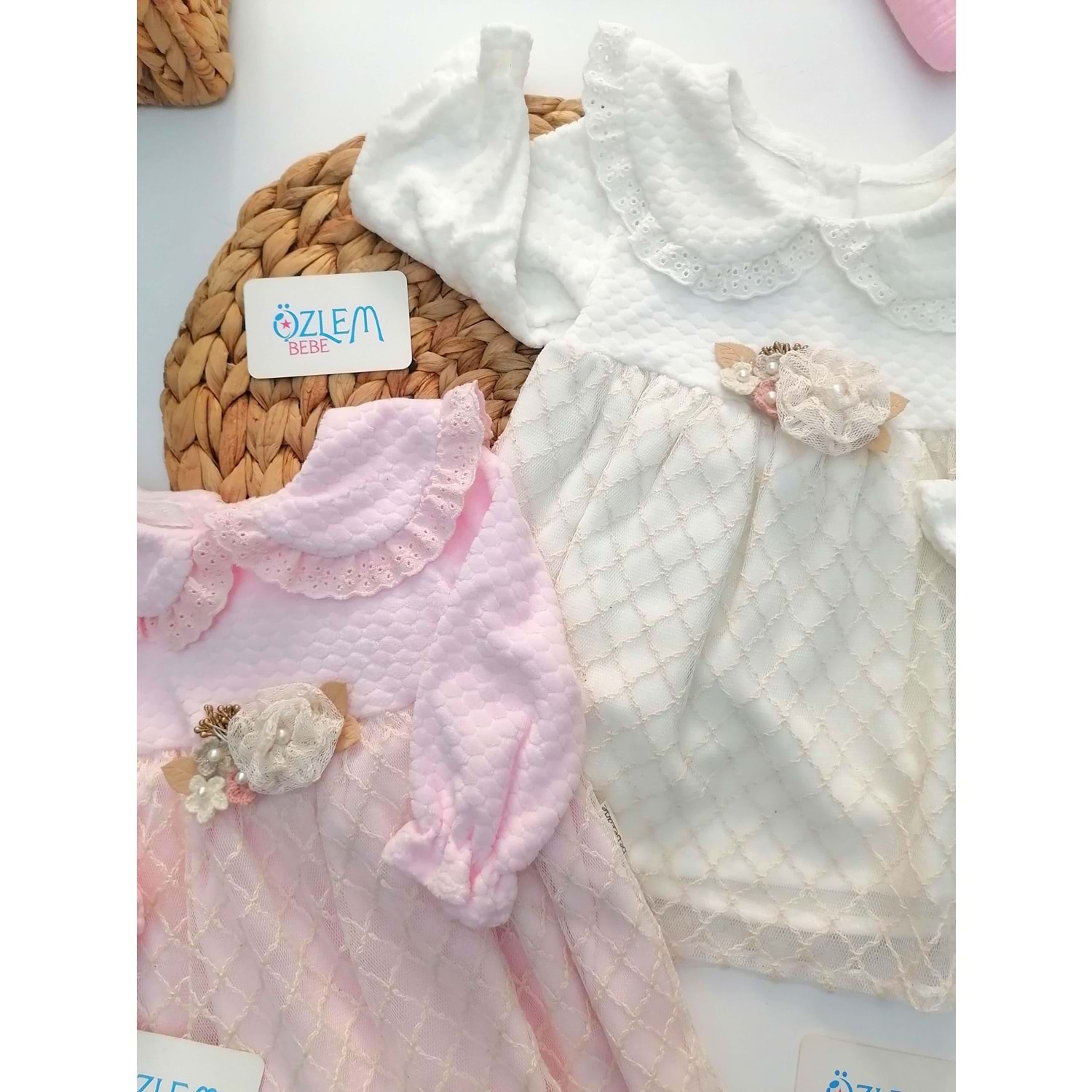 Güpürlü Minik Yaka Üstü Tül Kadife Elbise