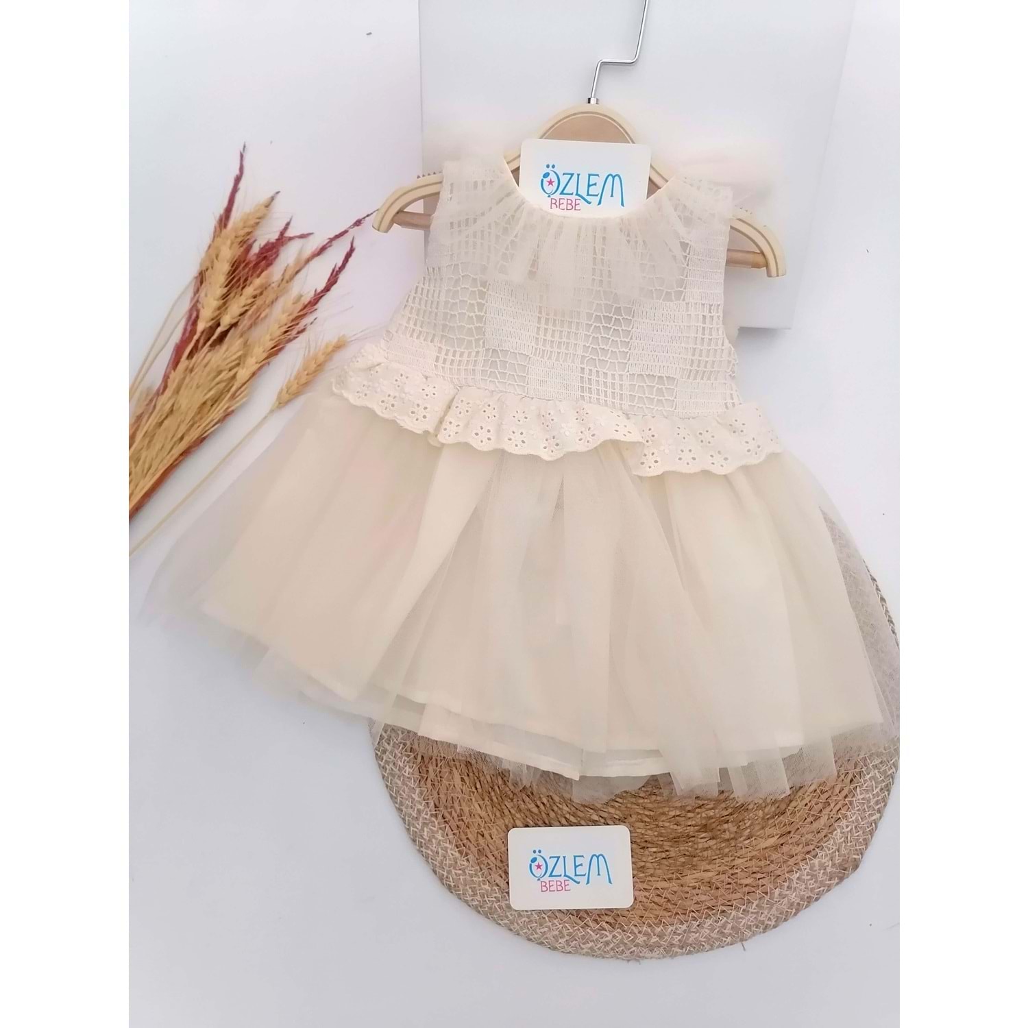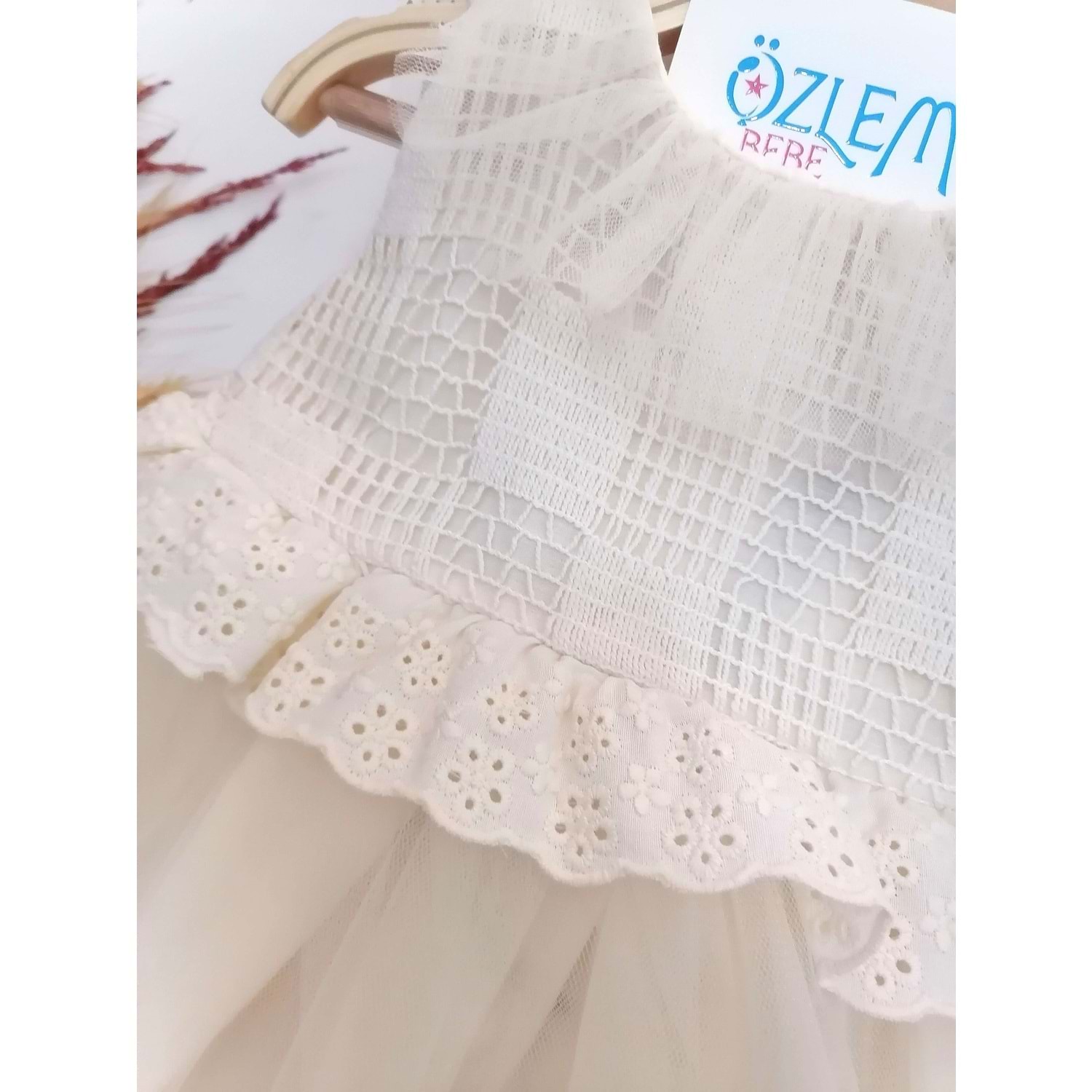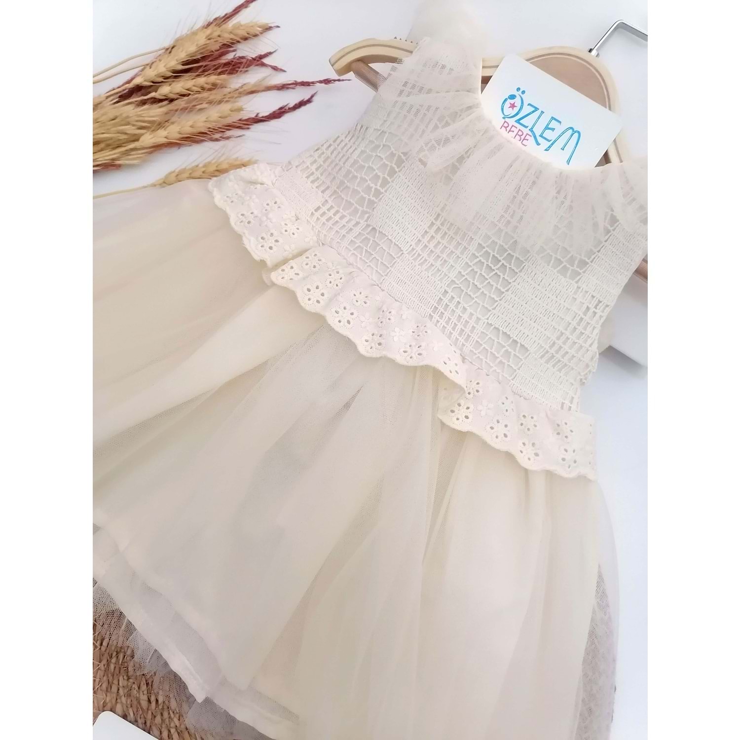 Tül Fırfır Yaka Fistolu Kabarık Elbise