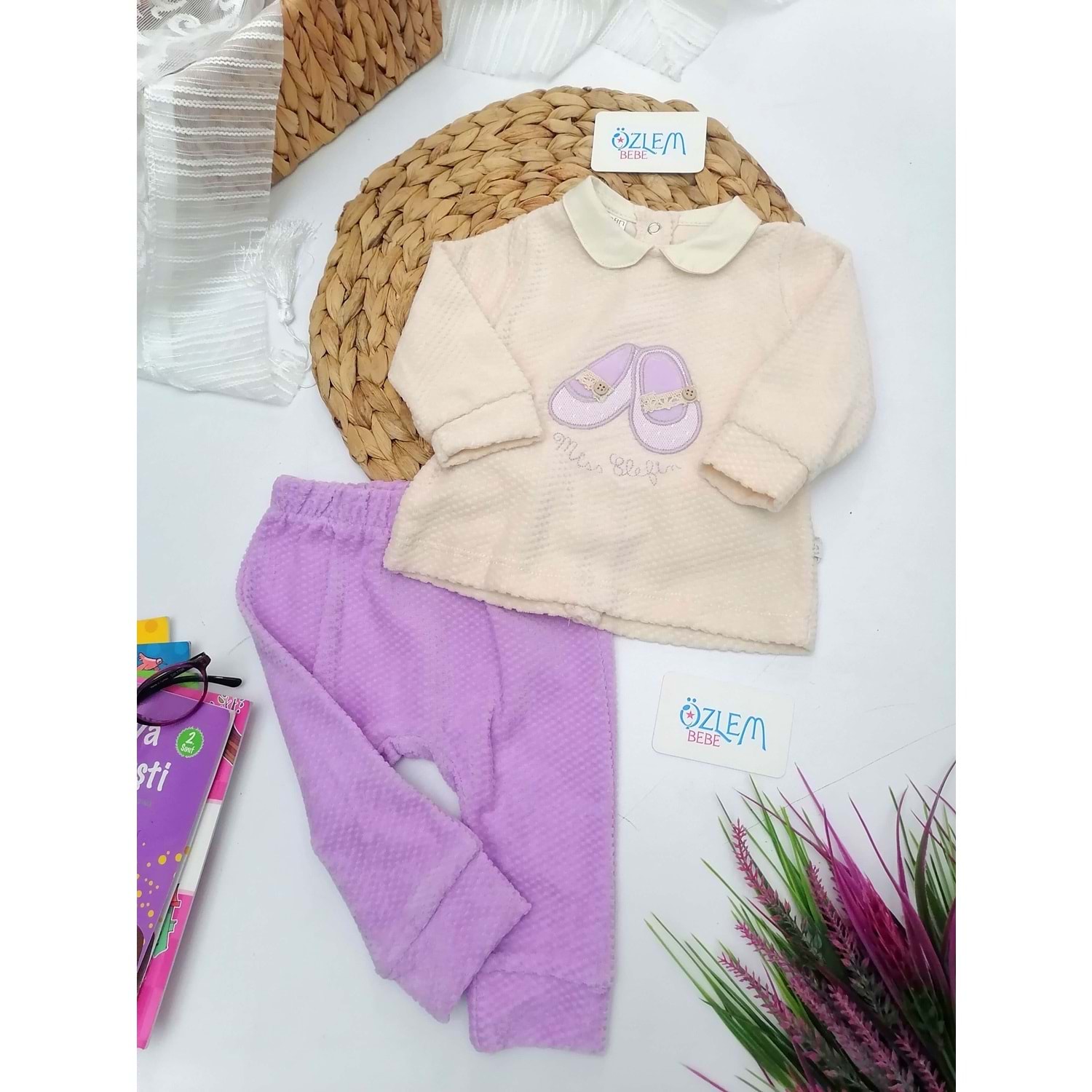 Balerin Ayakkabı Nakışlı 2'li Takım