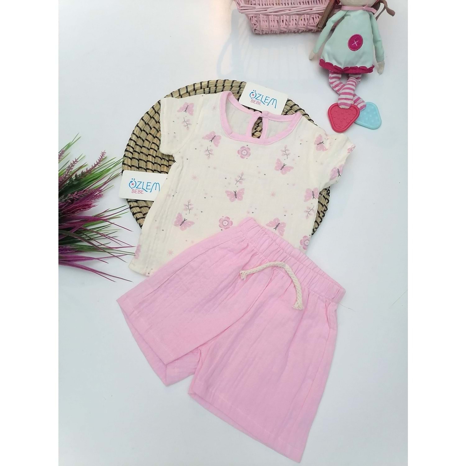 Çiçek Kelebek Şortlu Müslin 2'li Takım