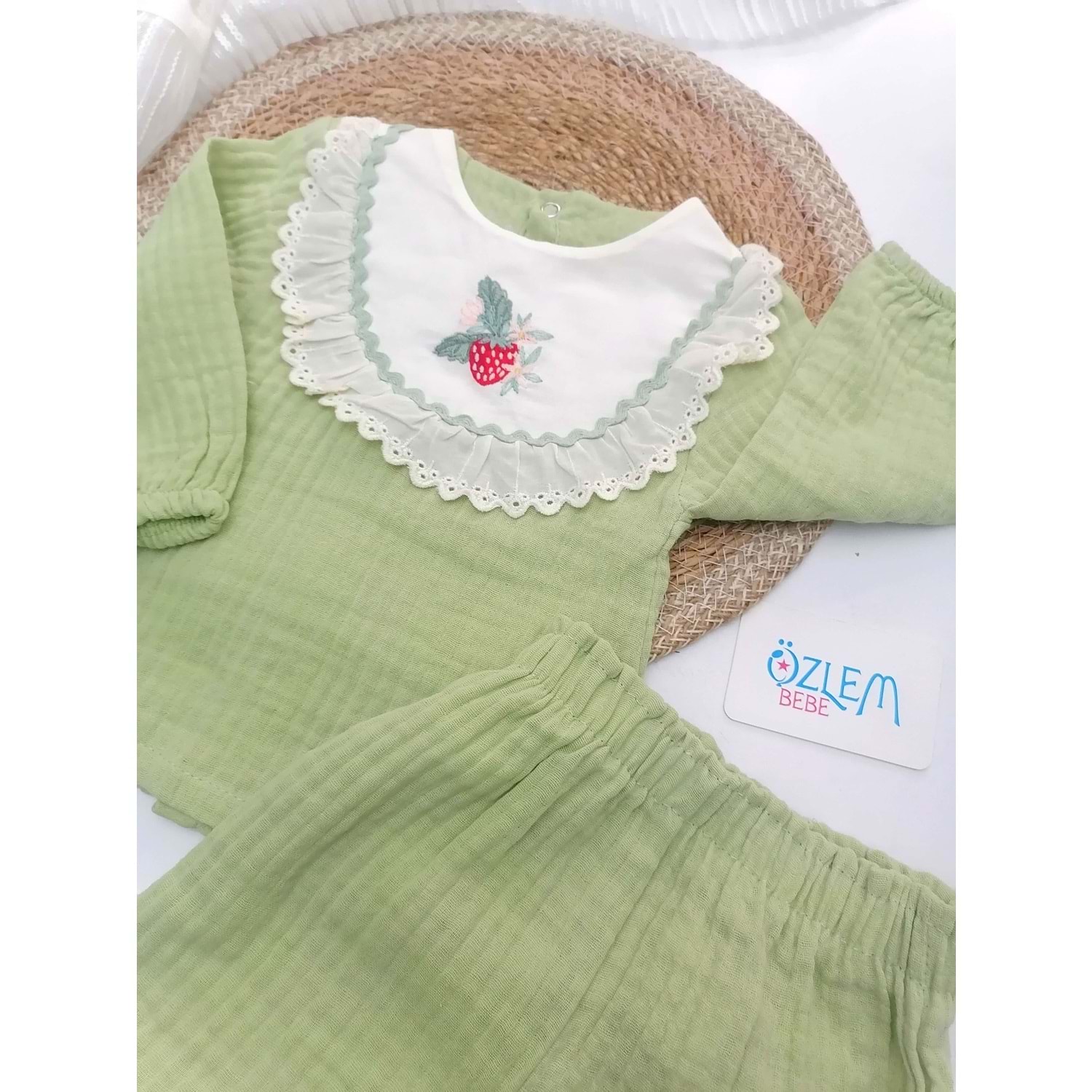 Çilek Nakış Yakalı Müslin 2'li Takım