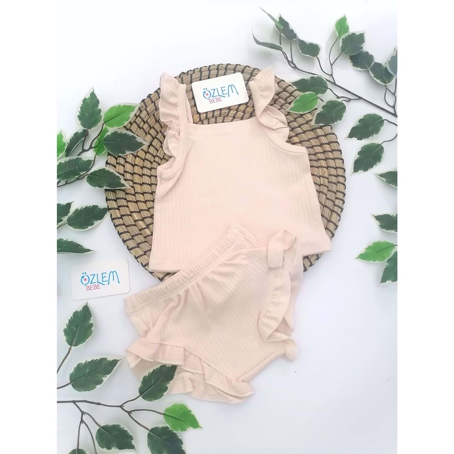 Fırfır Askılı Şortlu Krem Takım