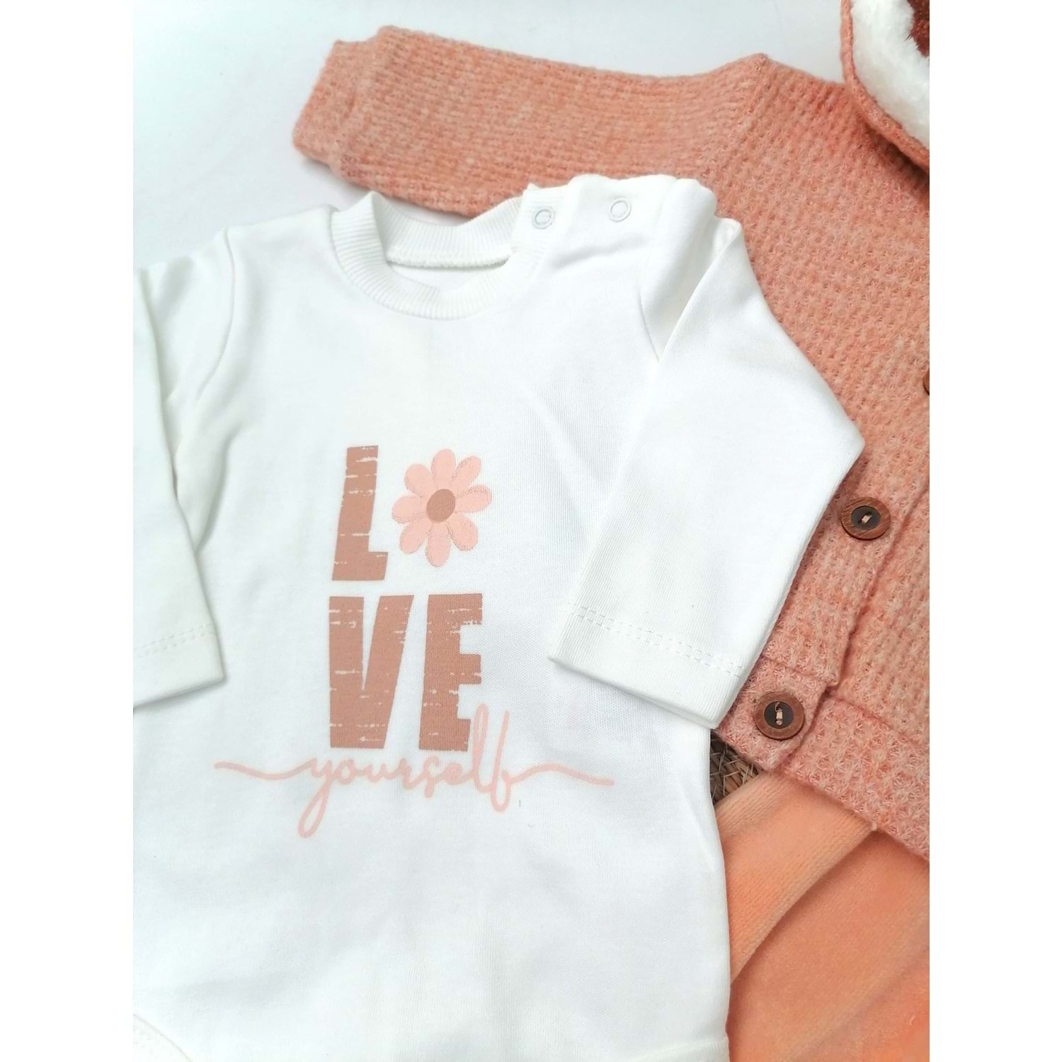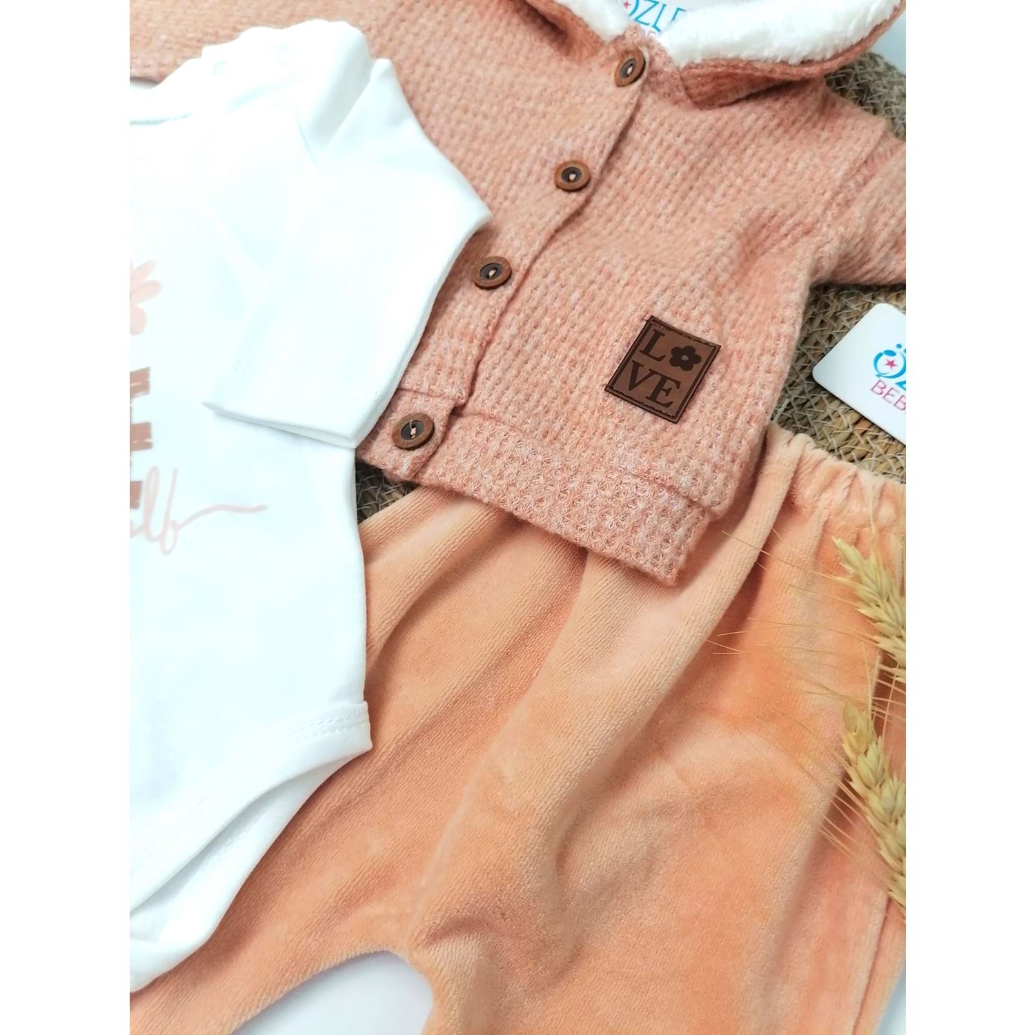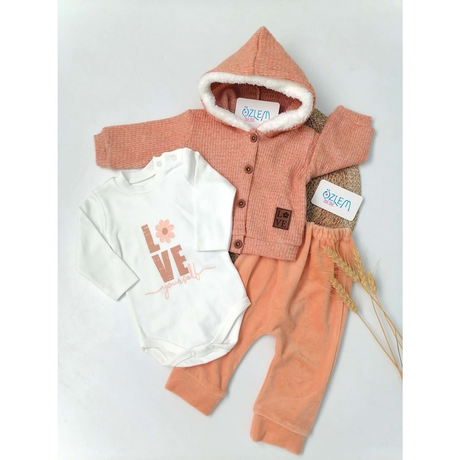 Kapüşonlu Tarçın Rengi 3'lü Bebek Takım