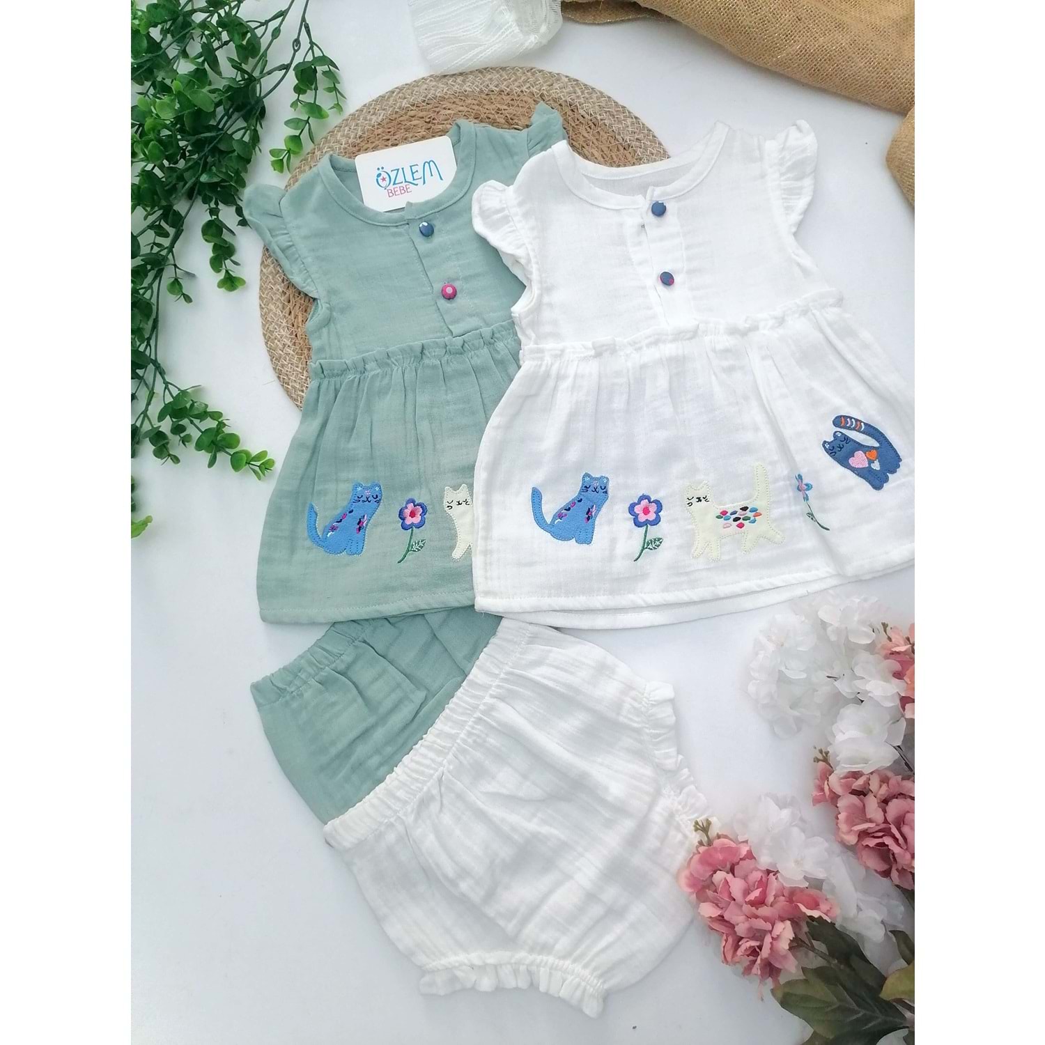 Kedili Nakış İşleme Müslin 2'li Takım
