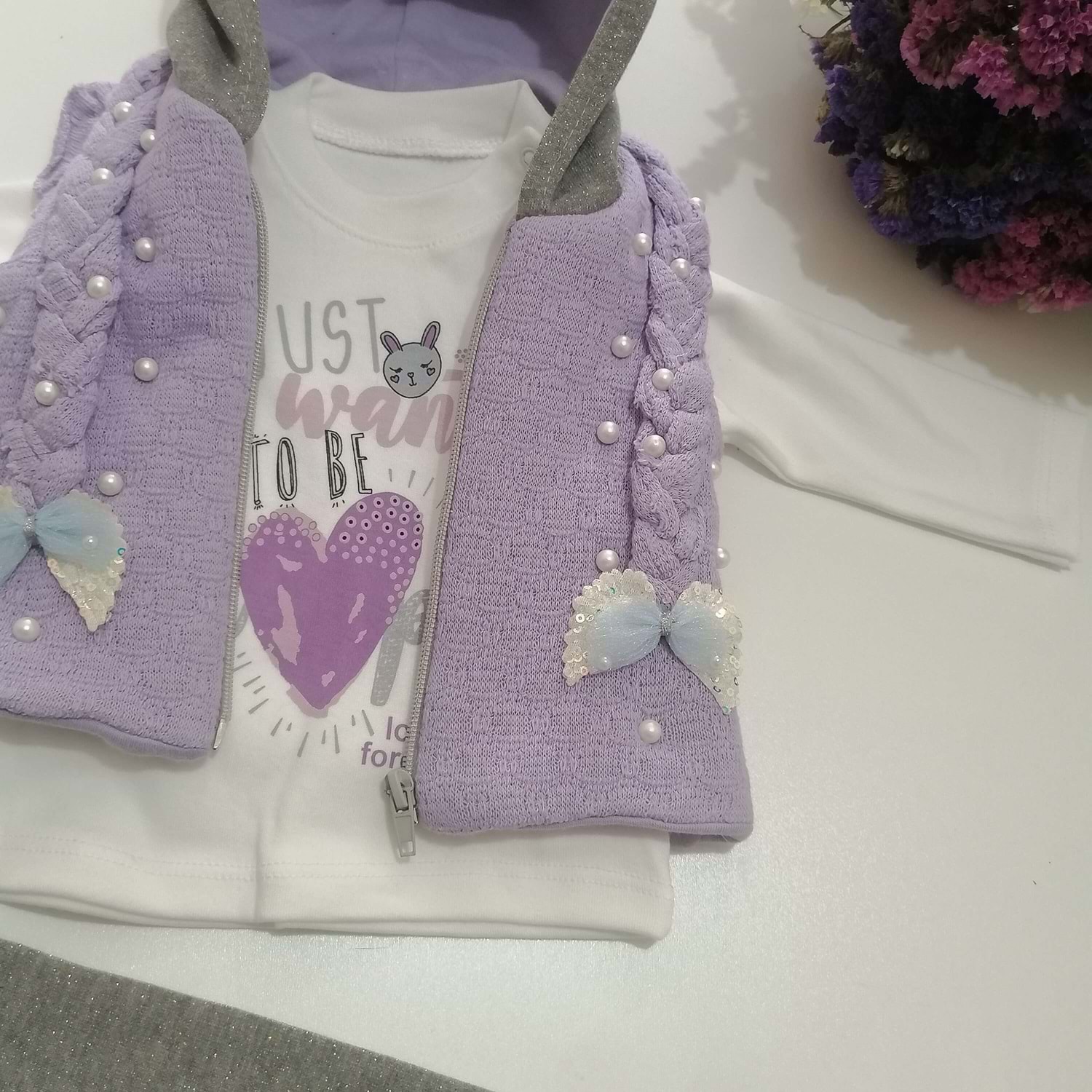 Mor Örgü Yelekli Kız Takım