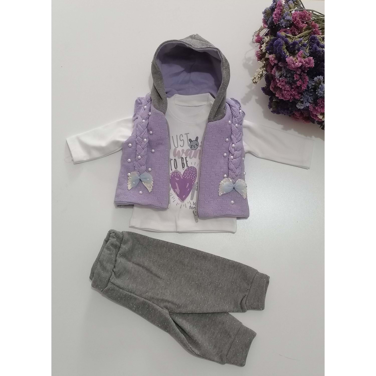 Mor Örgü Yelekli Kız Takım