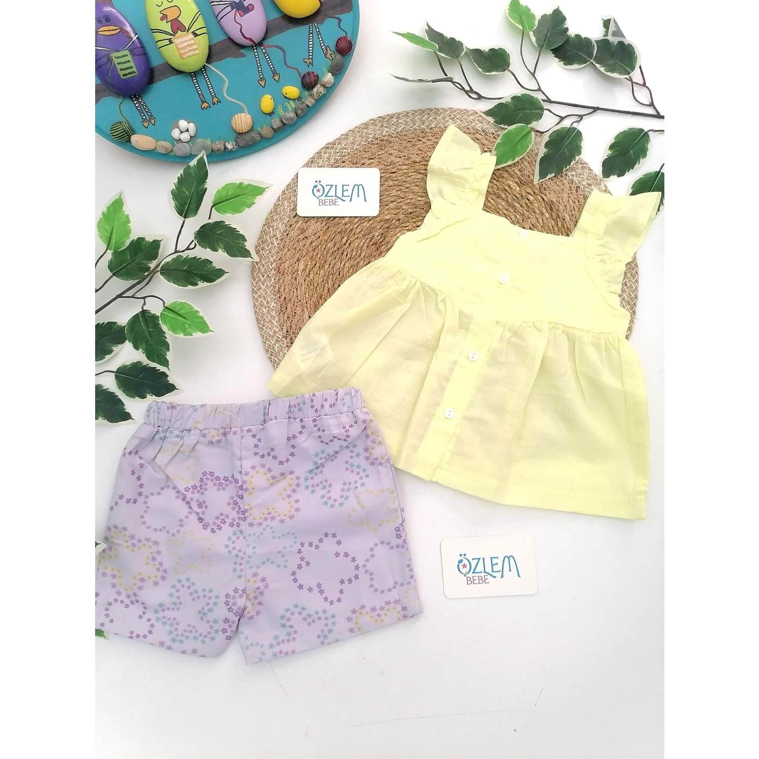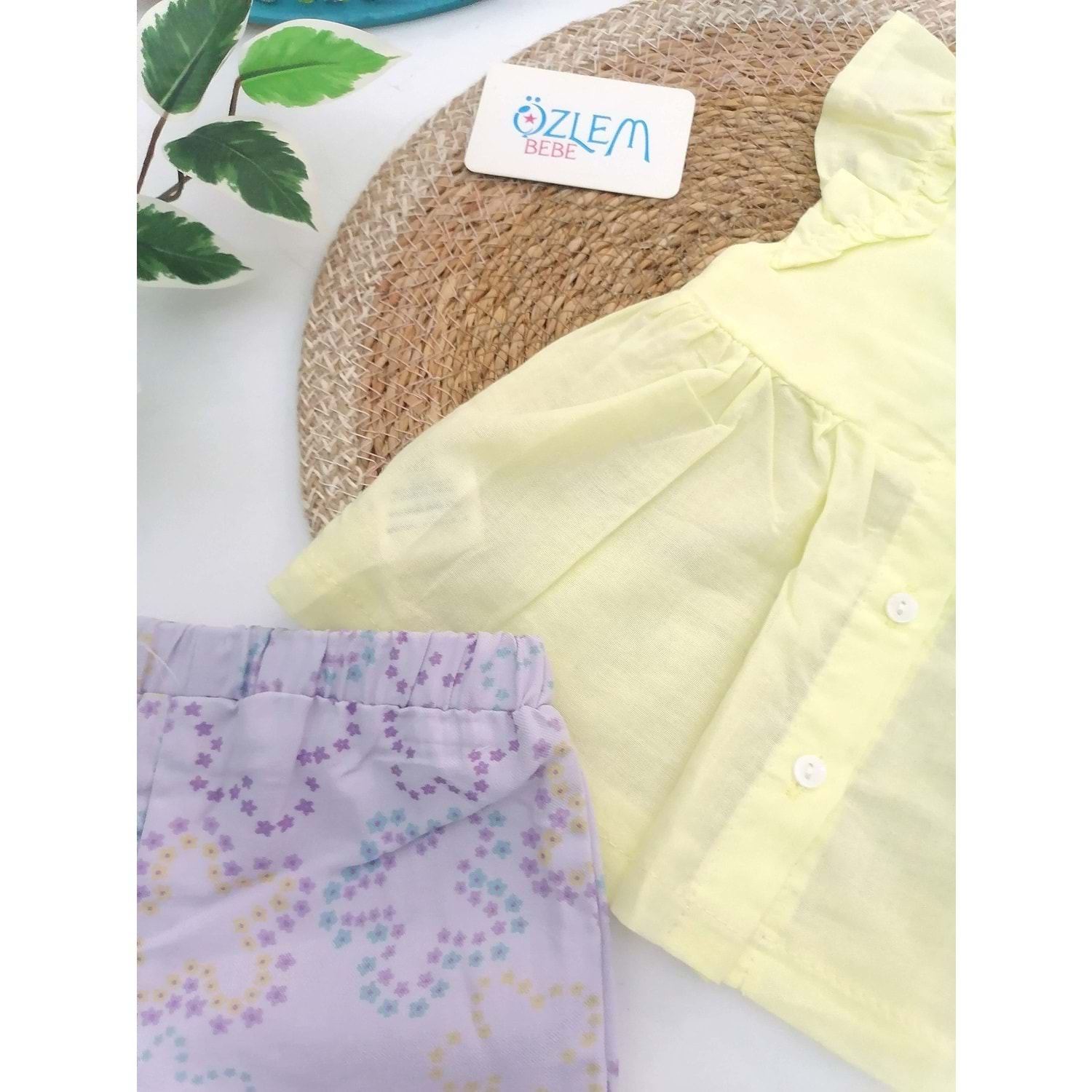 Sarı Gömlekli Lila Çiçek Şortlu Takım
