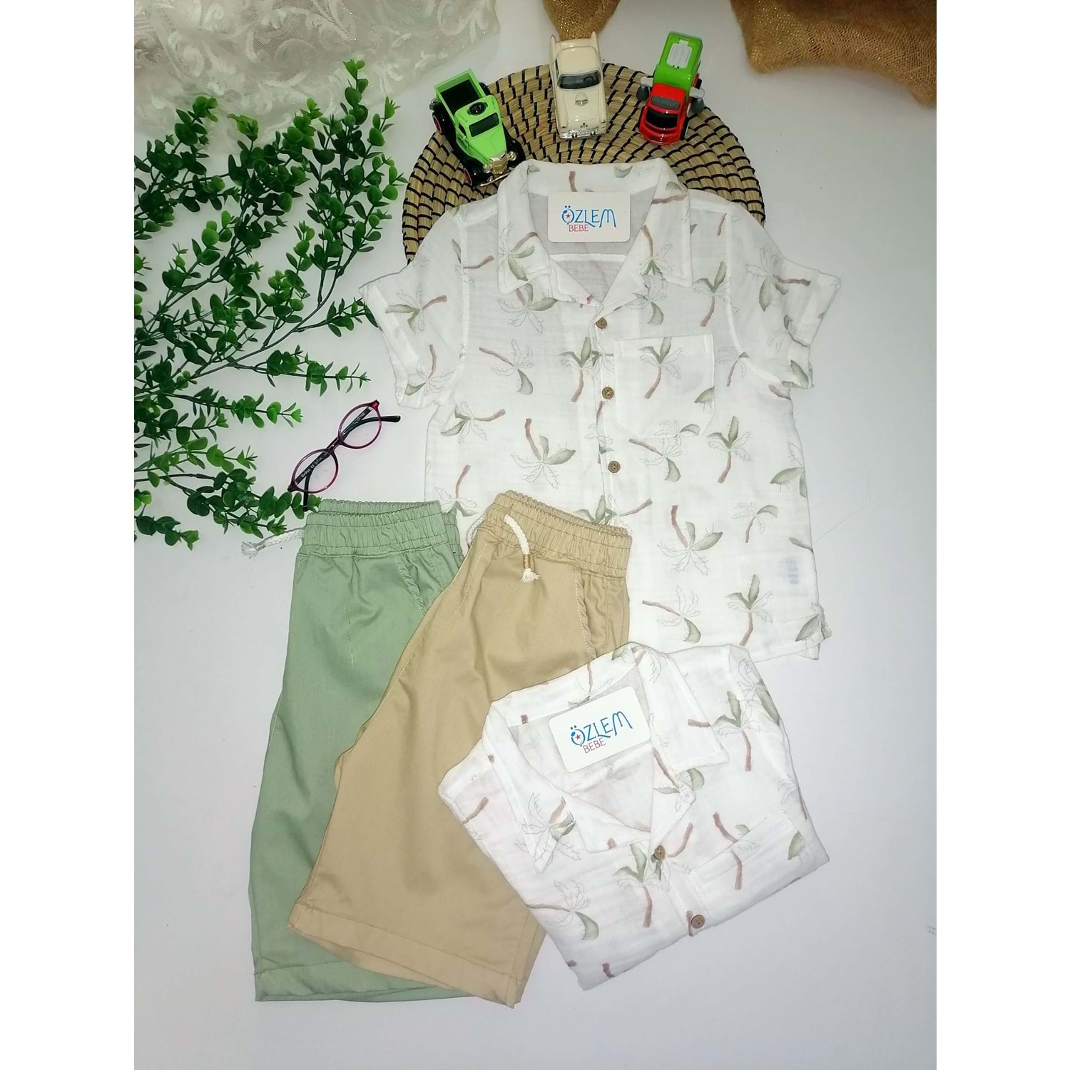 Palmiye Desen Müslin Gömlekli 2'li Takım