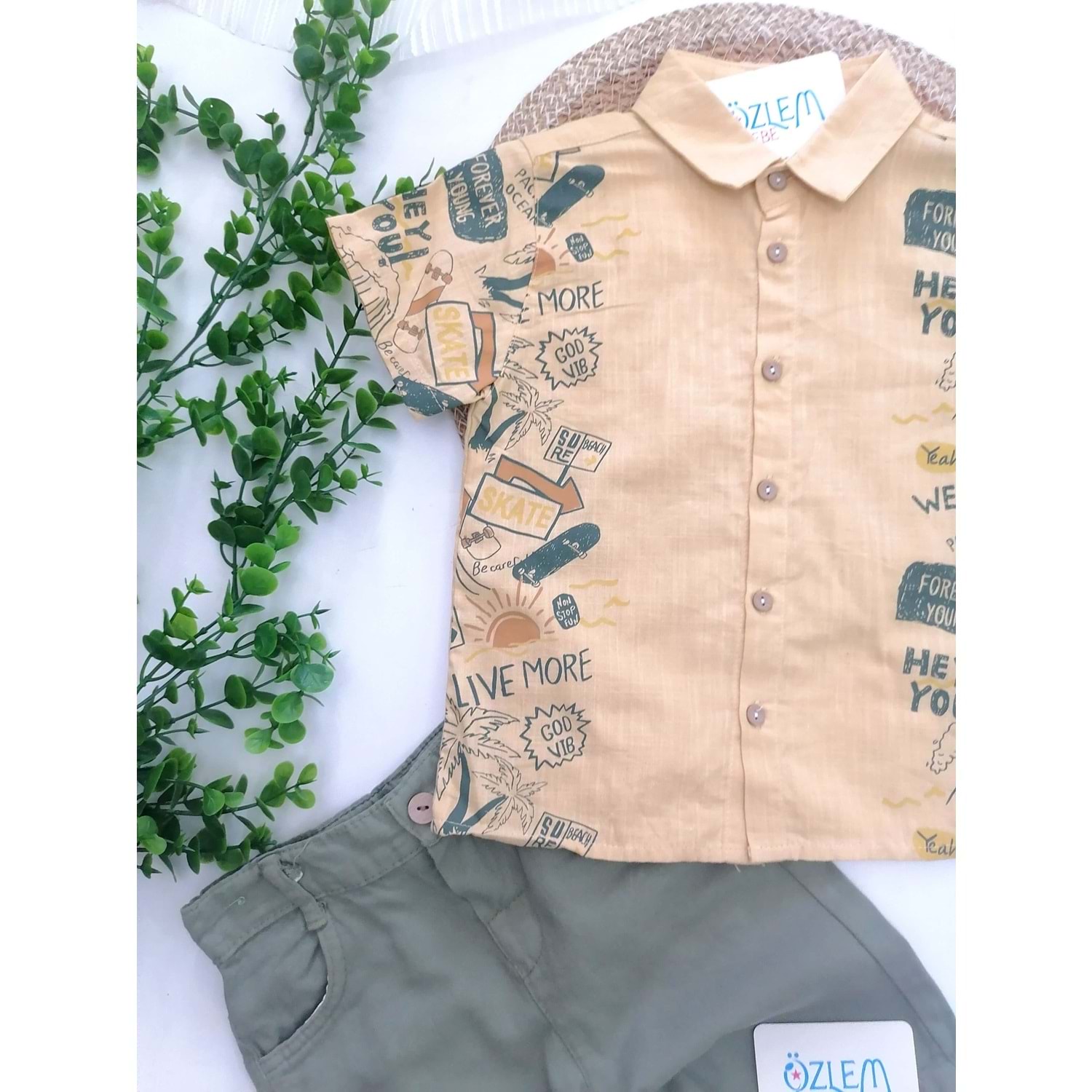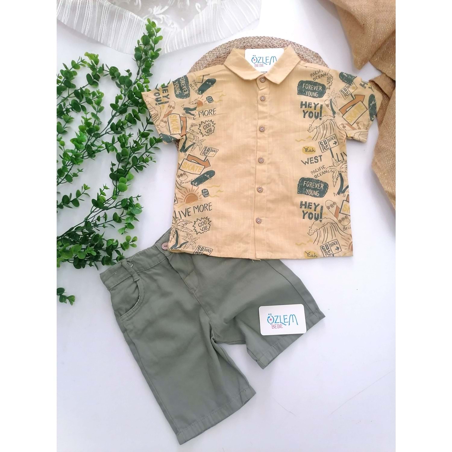 Safari Baskı Keten Gömlek&Şortlu 2'li Takım