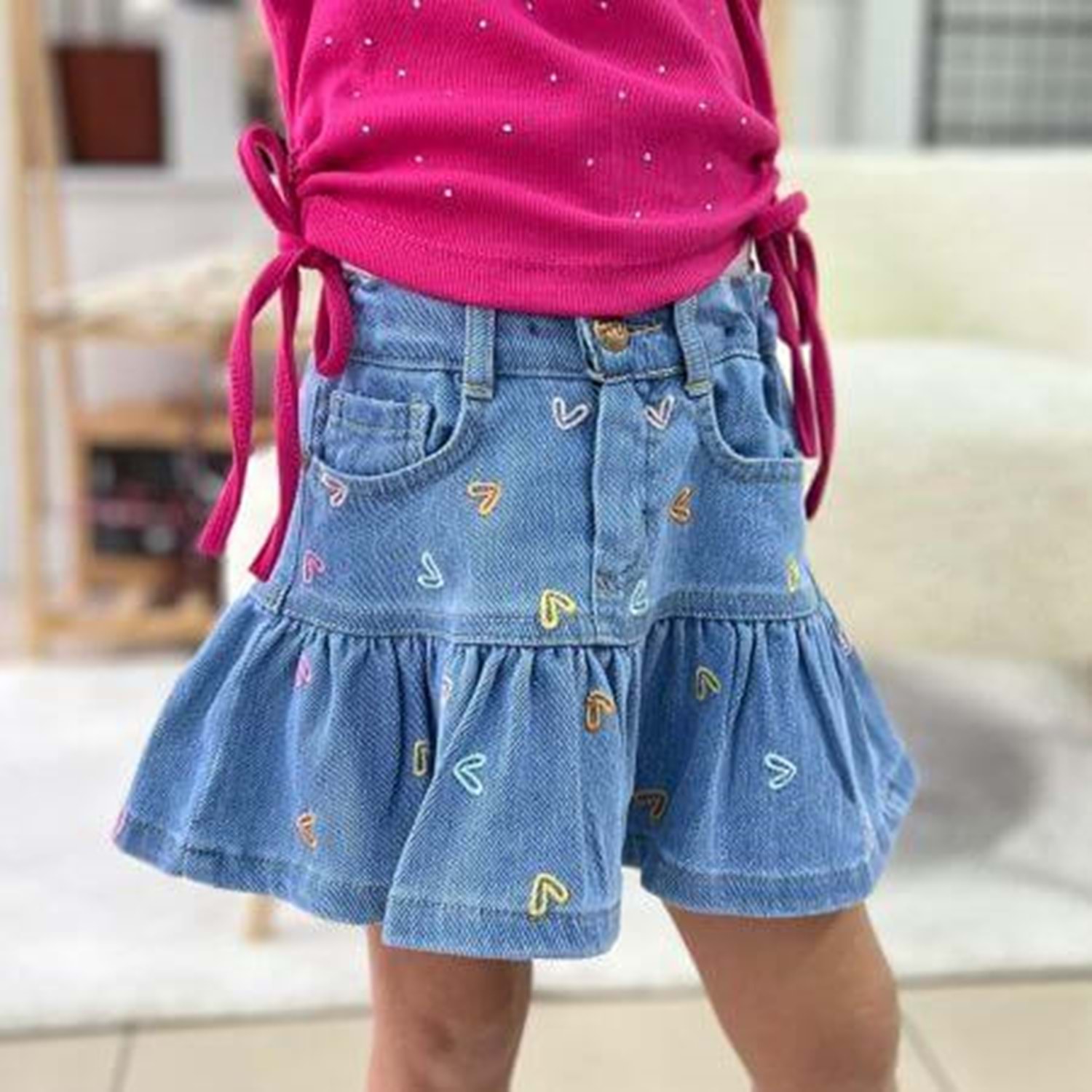 Kalp Nakışlı Kot Etek