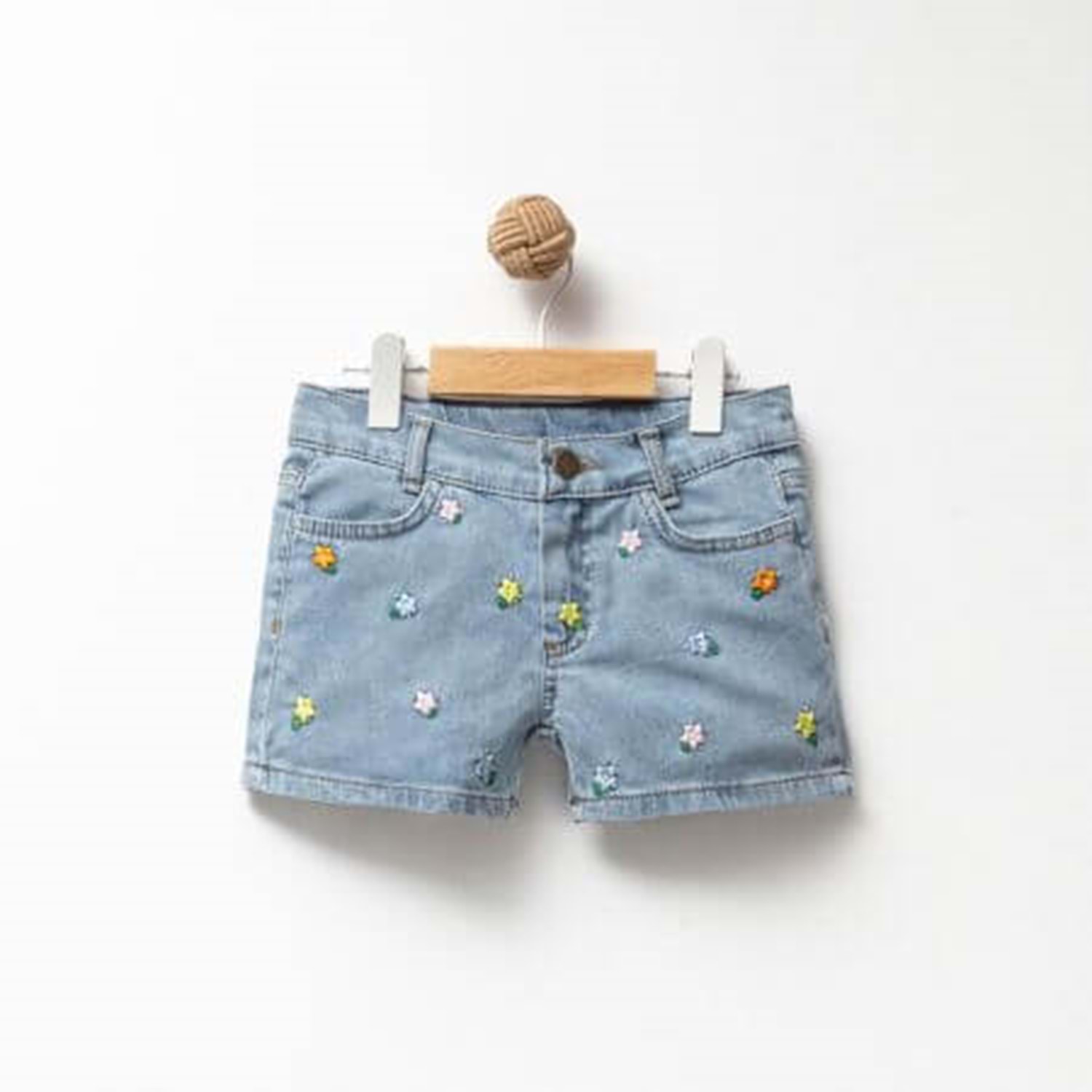 Renkli Çiçek Nakışlı Şort