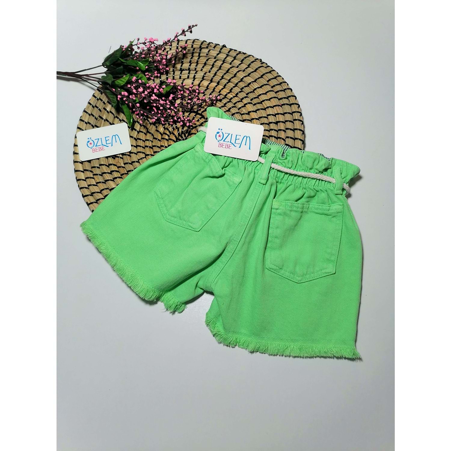 Renkli Düğmeli Belden Lastik Püsküllü Kız Şort