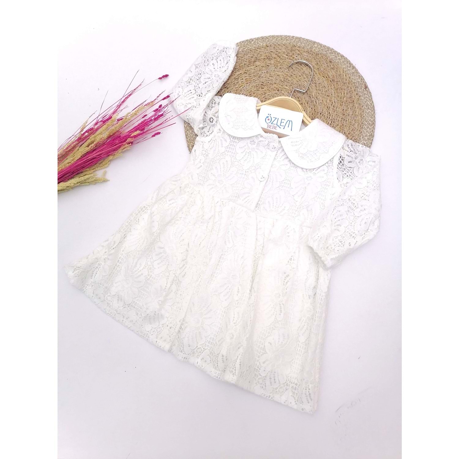 Bebe Yaka Dantelli Beyaz Elbise