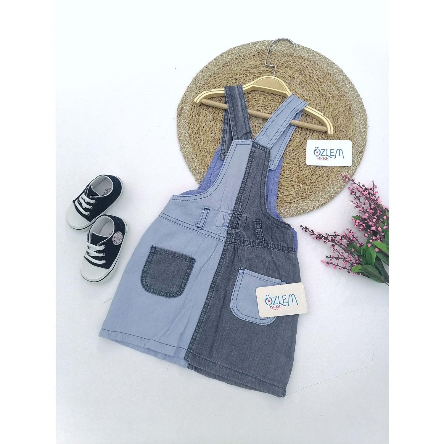Çapraz Renk Denim Salopet Elbise