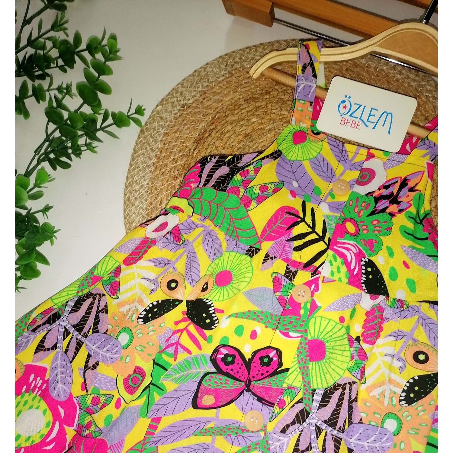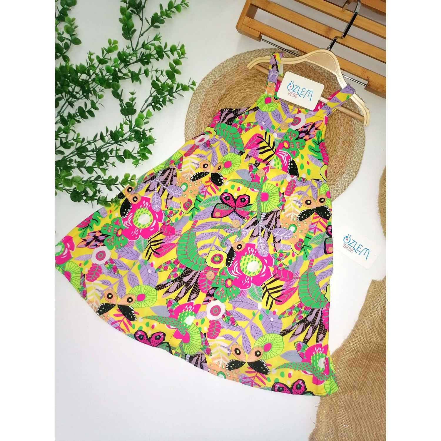 Çiçekli Desen Askılı Elbise