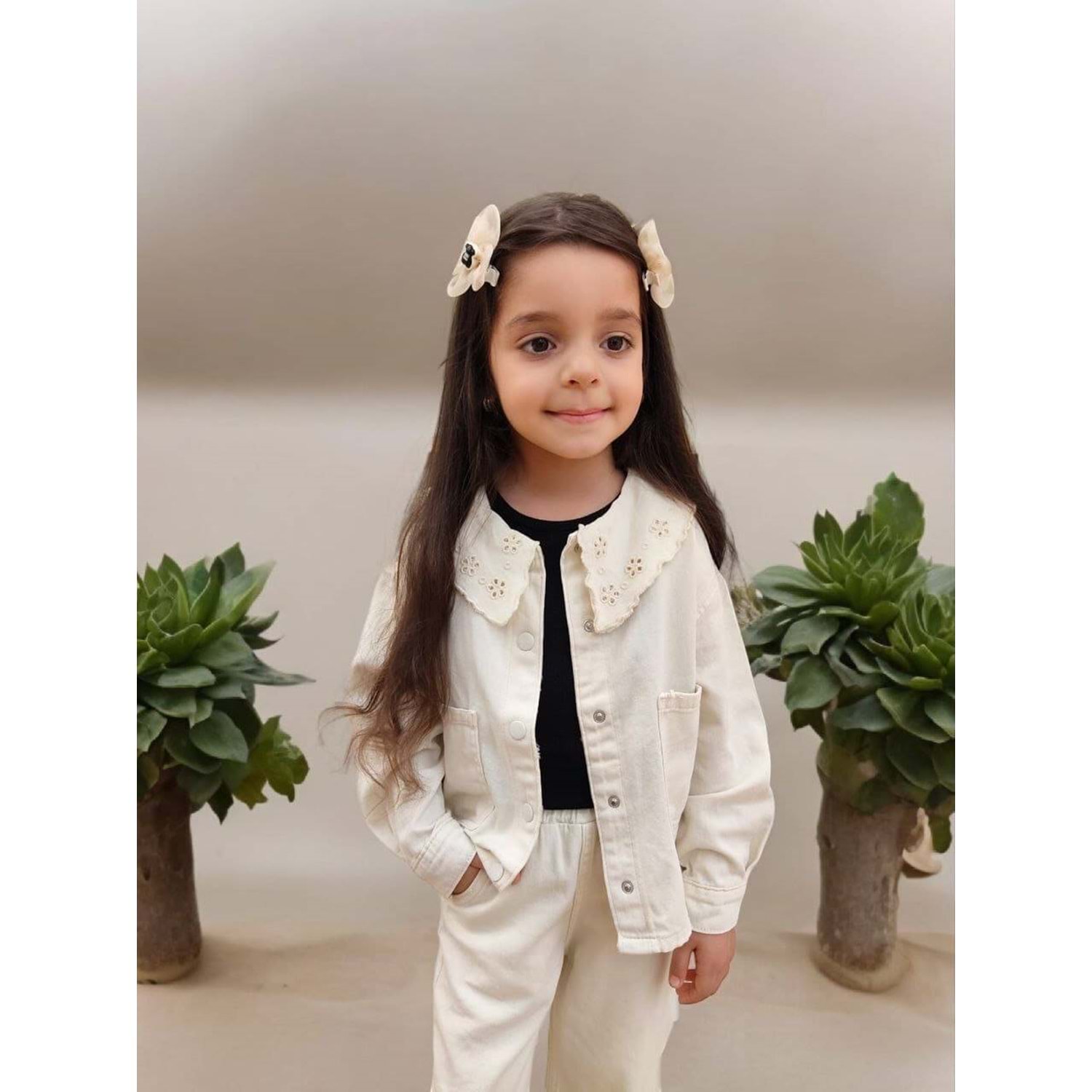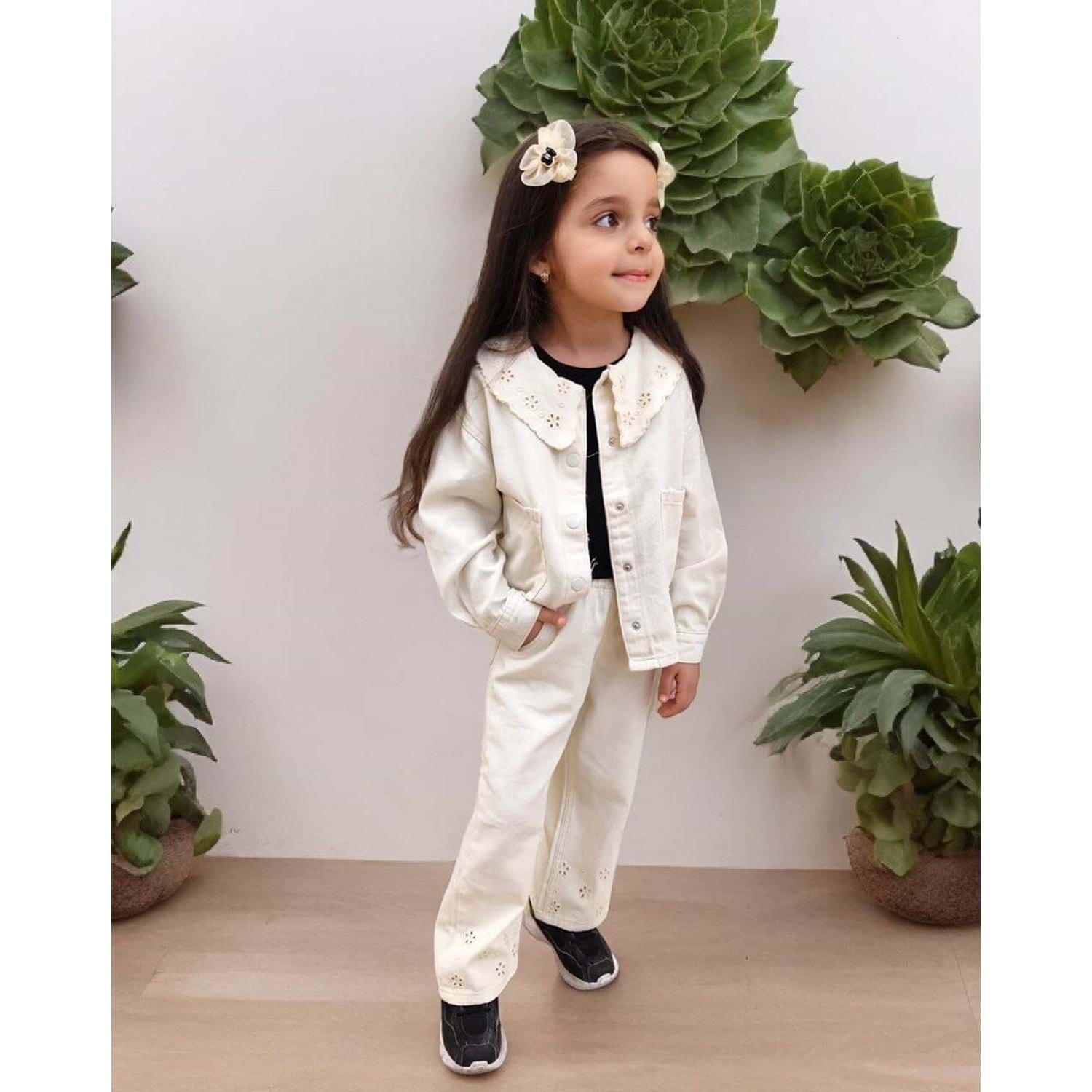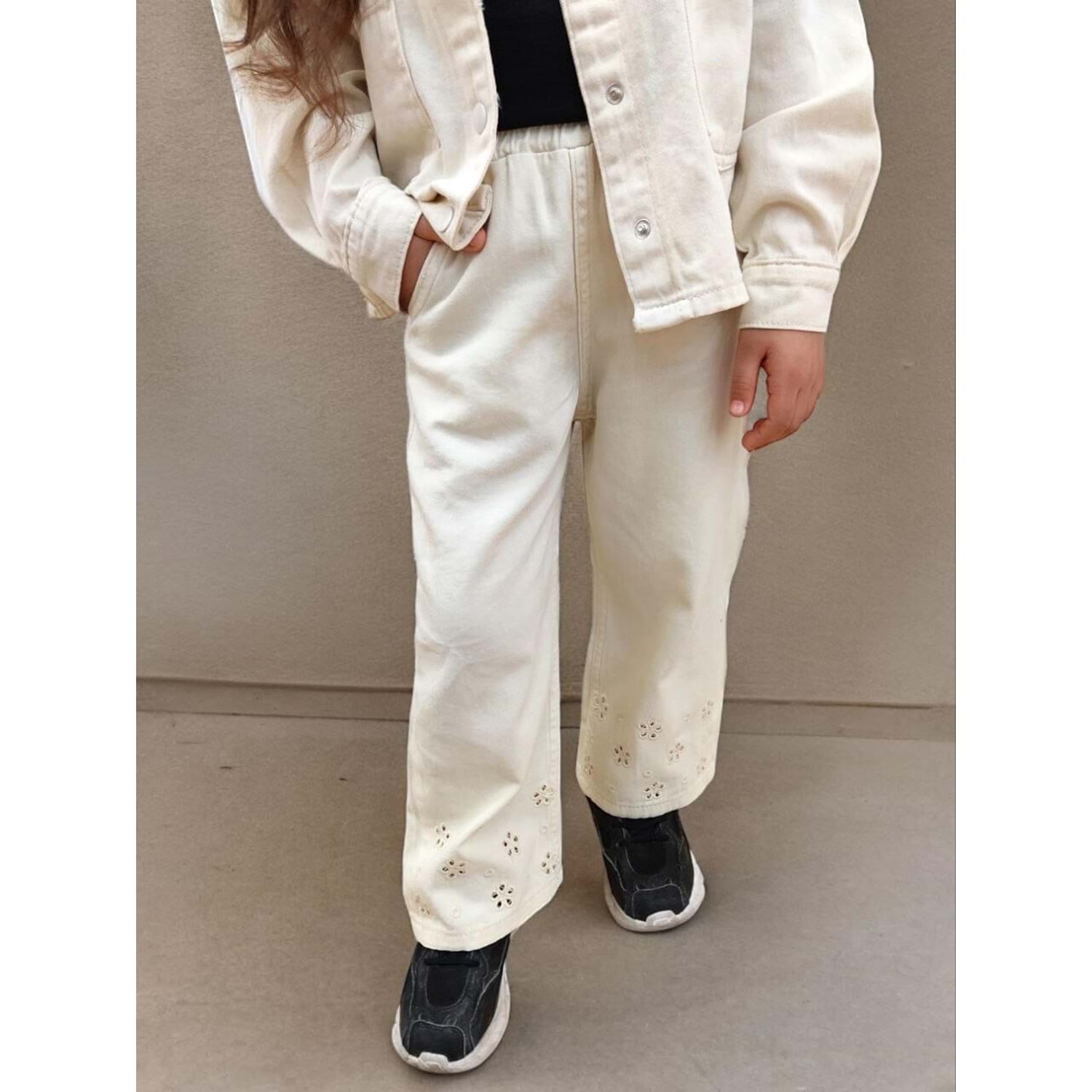 Oyma Yaka Ceketli Denim 2'li Takım