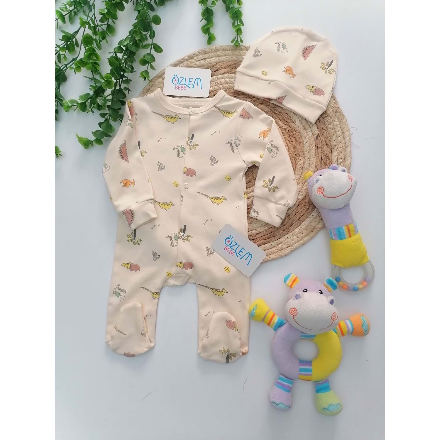 Dinasor Kardeşler Şapkalı Bebek Tulumu