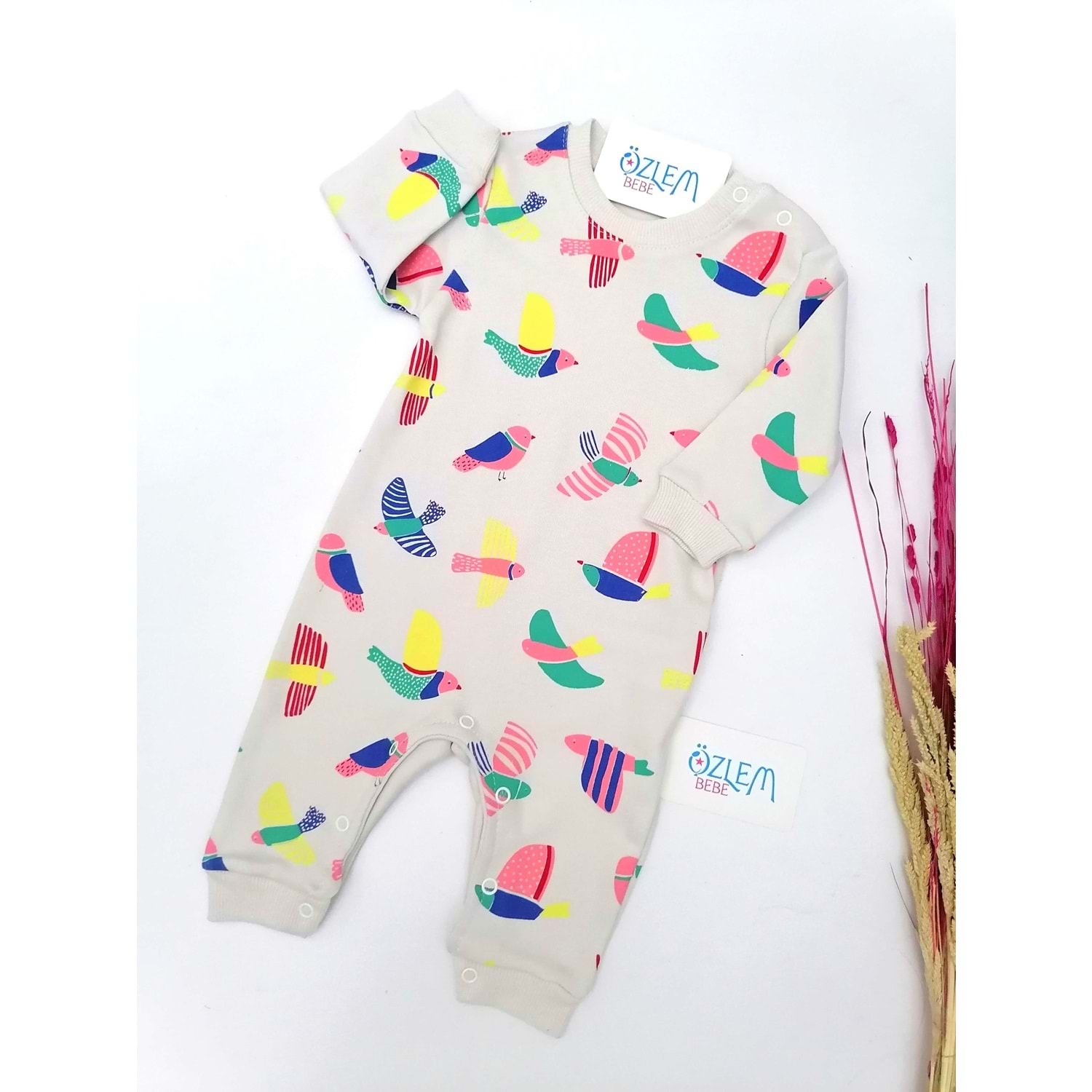 Renkli Kuşlar Bebek Tulumu