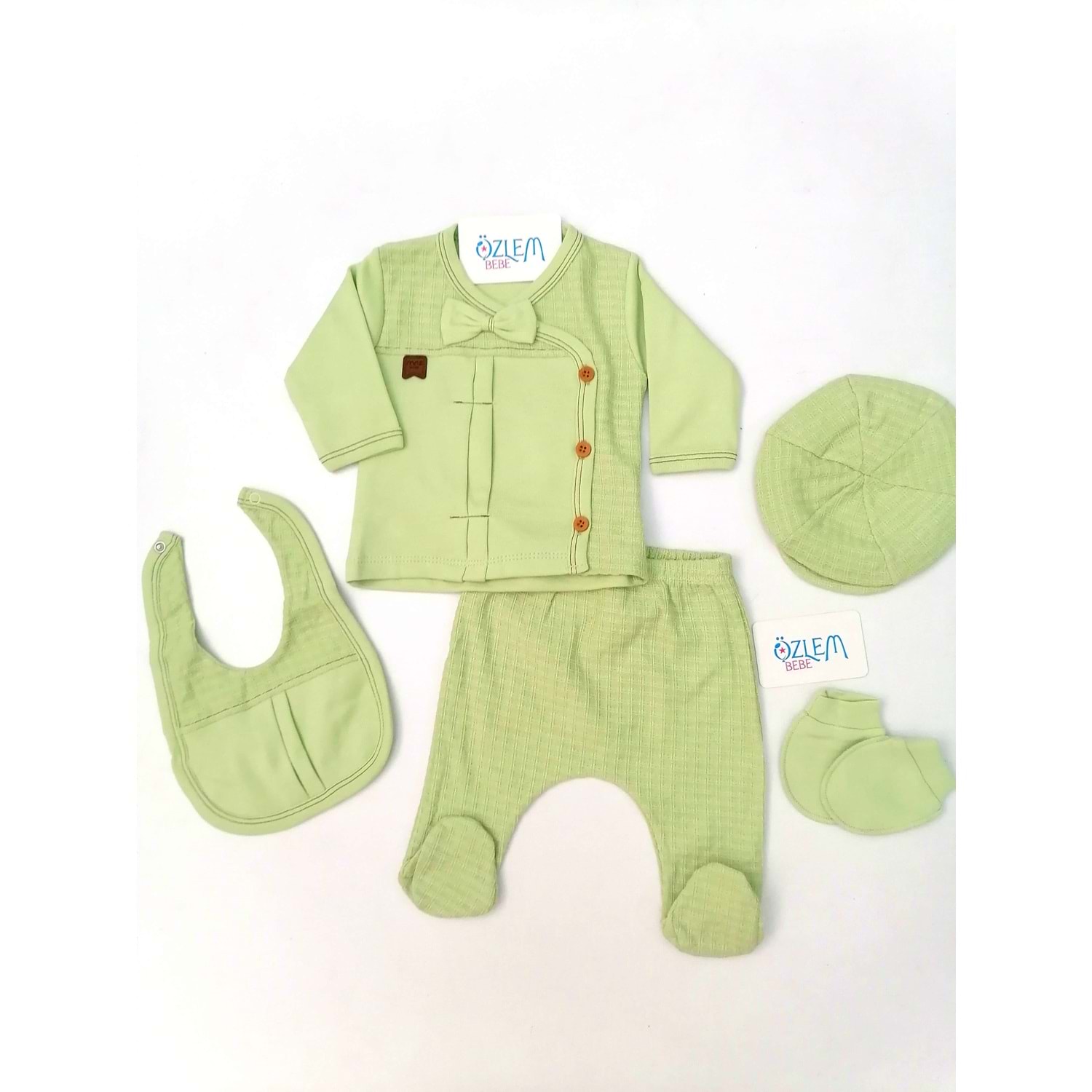 Papyonlu Önden Düğmeli Yeşil 5'li Hastane Çıkışı